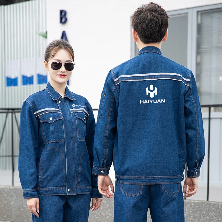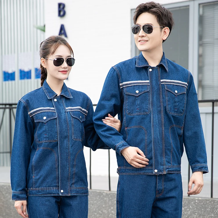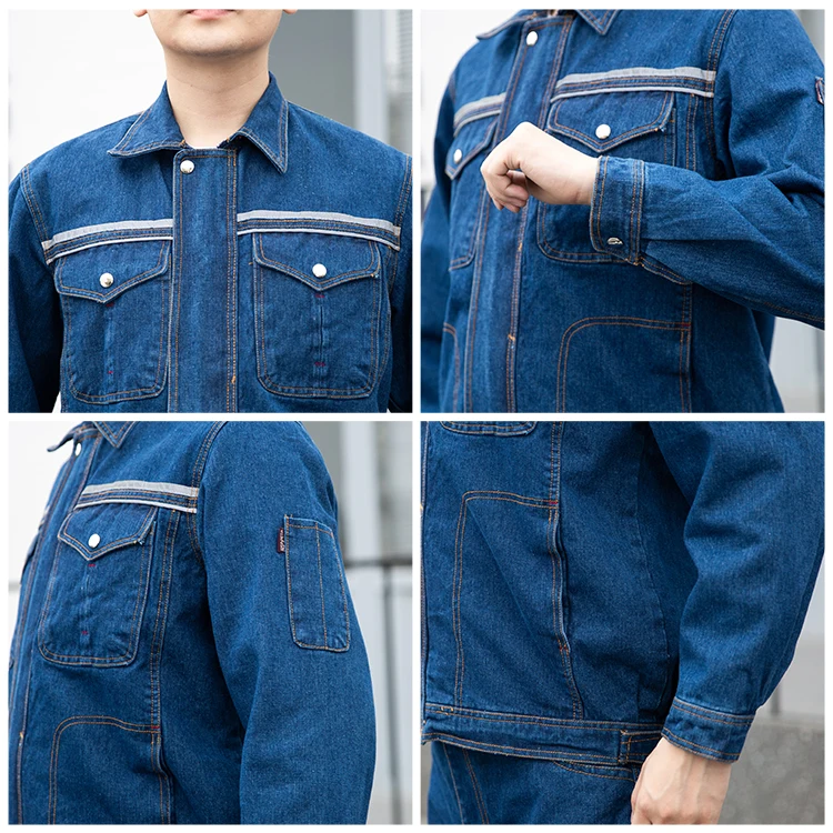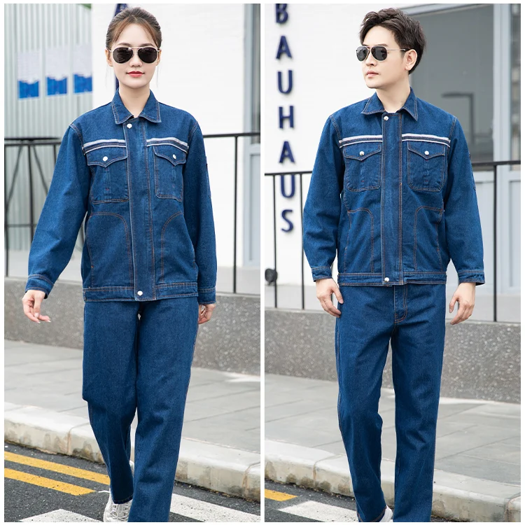 With Reflective Strips Denim Working Clothes With Lining Workwear for Men and Women Worker Scrub Uniform