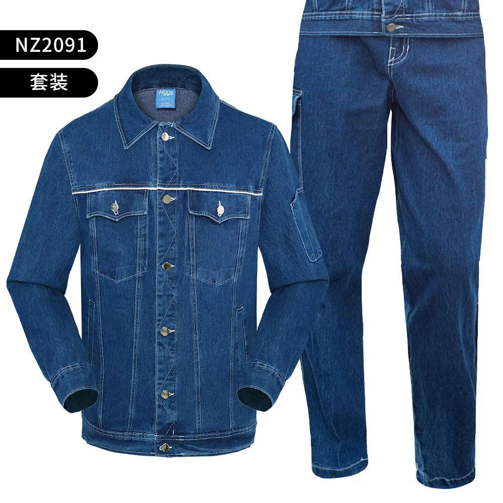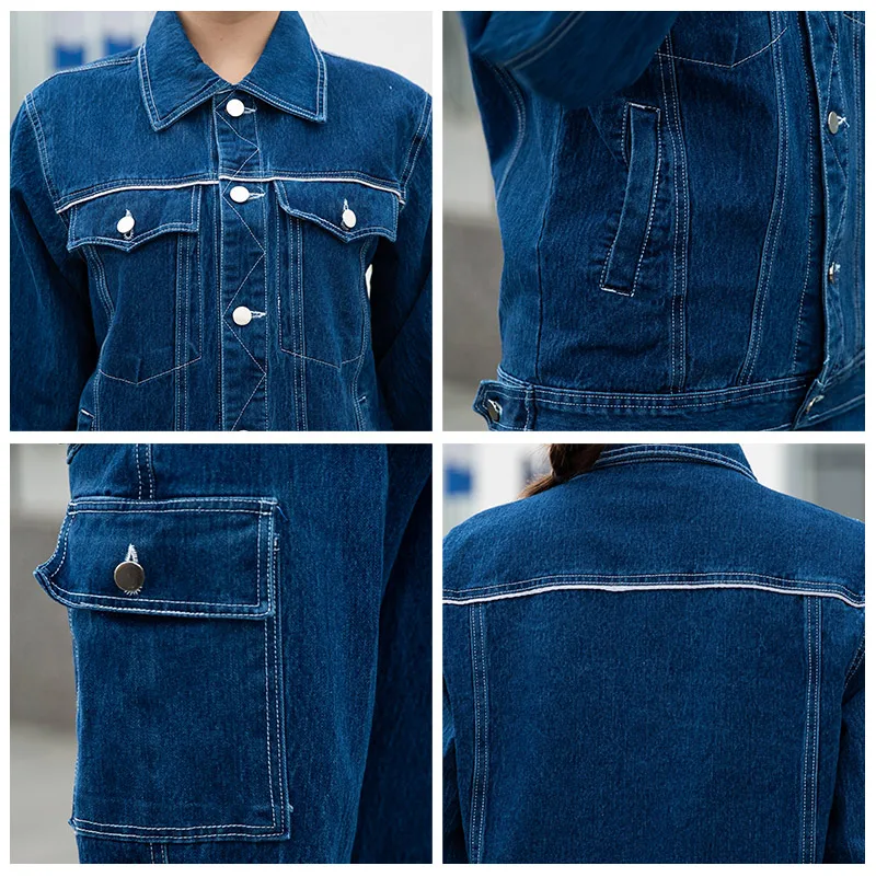 Fast Send Summer Long Sleeve Worker Overalls Out Cowboy Working Clothes Denim Workwear Jacket and Pants with Reflective Strips