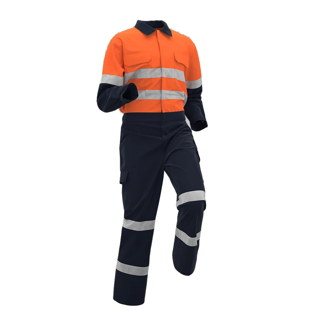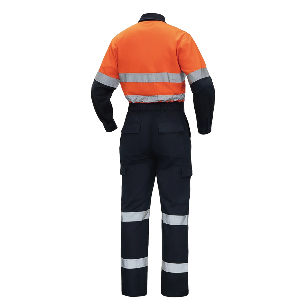 Hi Vis Fluorescent Orange Men's Workcoveralls Factory-Supply Reflective Safety Workscrubs Uniforms Cotton Overall Workwear