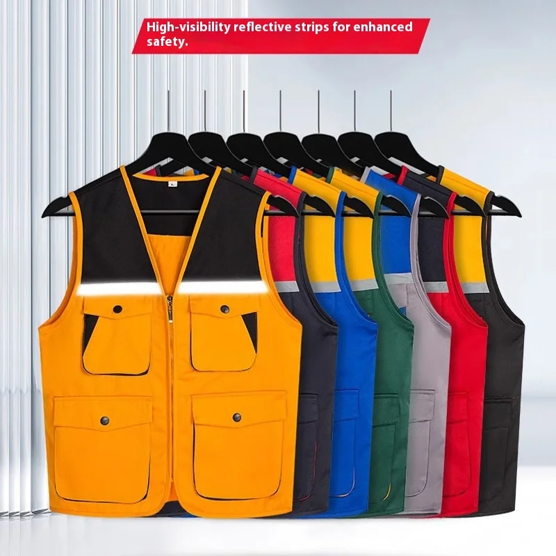 Custom Breathable Cotton Hi Visibility CE Certified Unisex Reflective Vest Labor Protection for Construction Site Decoration
