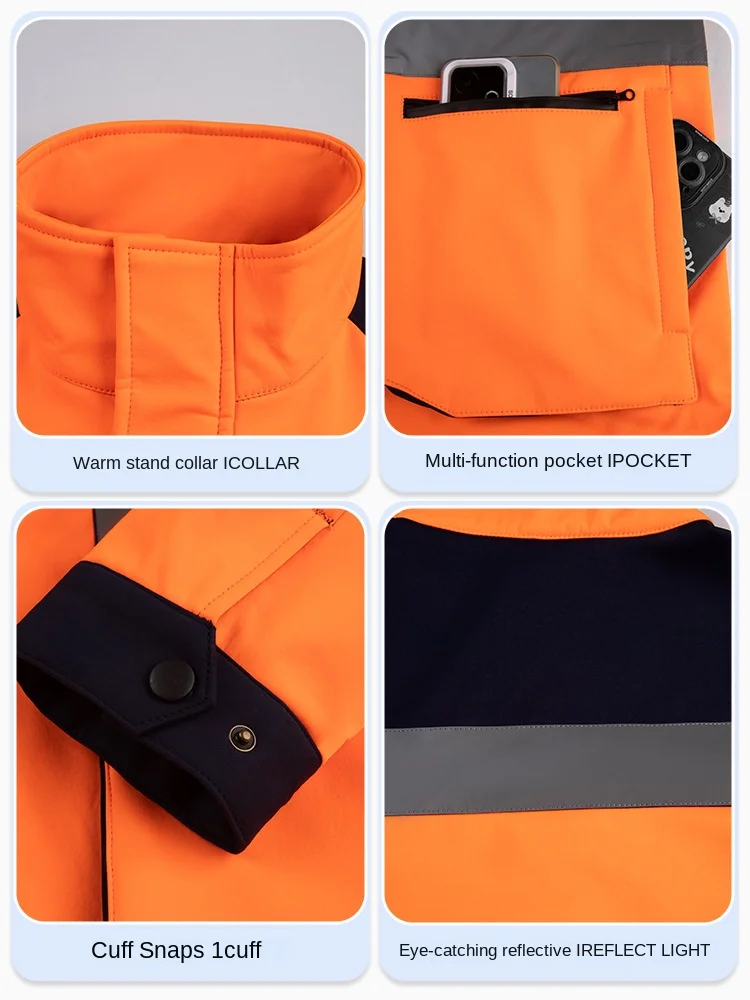 Fluorescent Polyester Fleece CE Certified Hi Visibility Unisex Waterproof Cold-proof Autumn Winter Work Jacket Construction
