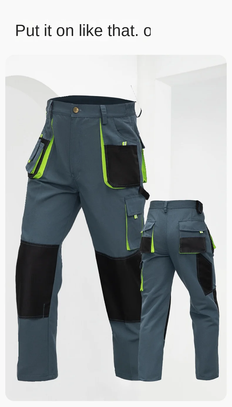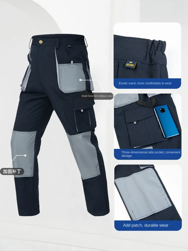 Spring Autumn Casual Men's Labor Protection Work Pants Construction Site-Breathable Midweight Polyester/Cotton Wide Leg Mid