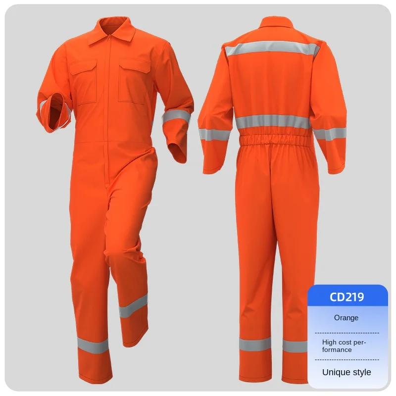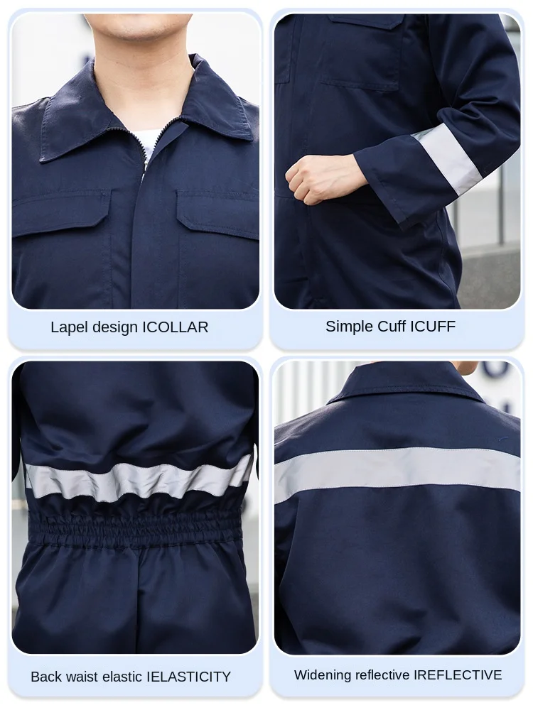 Spring Autumn Work Coverall 100% Cotton CE Certified Breathable Reflective Strip Wear-Resistant Unisex