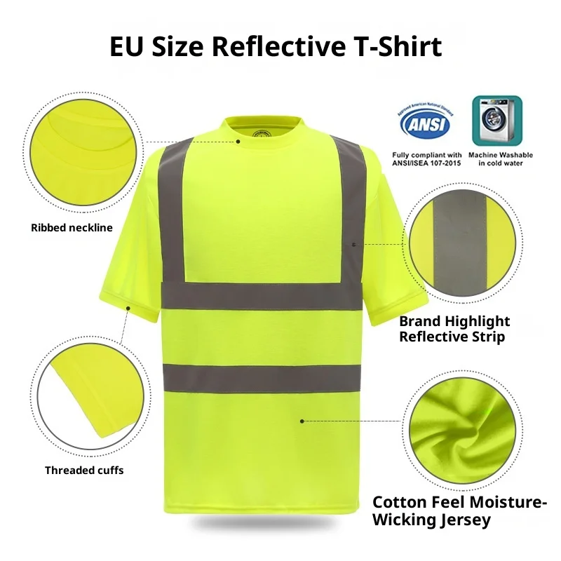 Reflective Fluorescent Safety Polyester Breathable T-Shirt Construction Site Engineering Building Short Sleeve Riding Outdoor CE