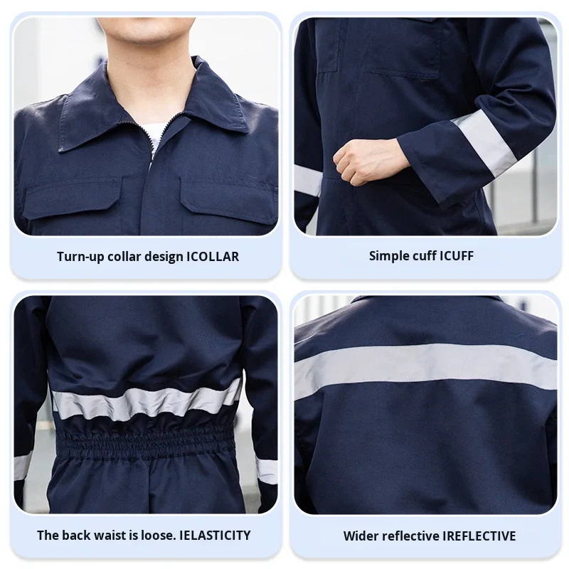 Foreign Trade Spring Autumn Work Coverall Reflective Strips Wear-Resistant Breathable Polyester CE Certified Unisex Factory