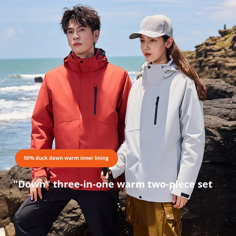 Autumn Winter Men's Women's Waterproof Windproof Three-In-One Outdoor Jacket Detachable Liner Customizable Printing Zipper