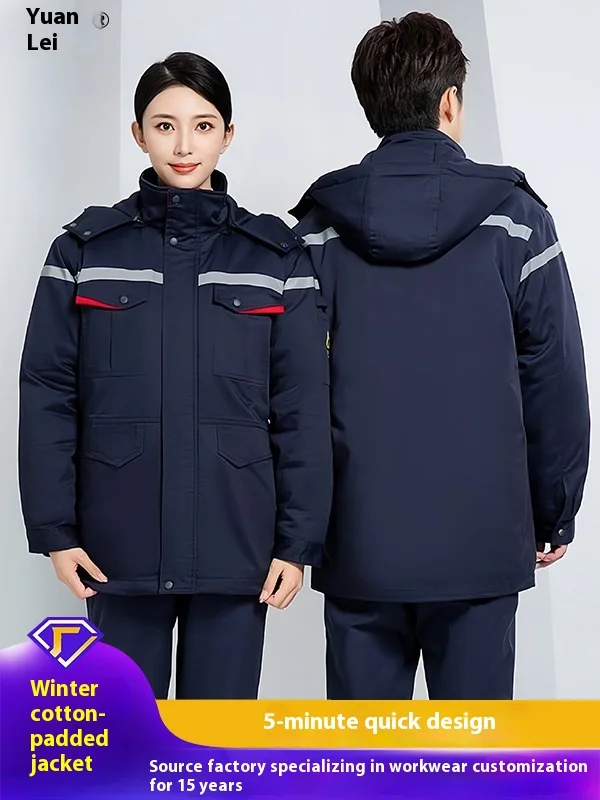 Autumn Winter Thickened Anti-Static Cotton-Padded Work Jacket Dirt-Resistant Wear-Proof for Group Enterprises Tooling