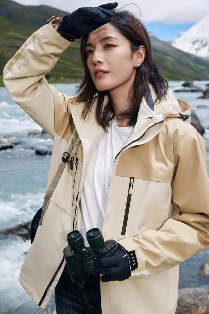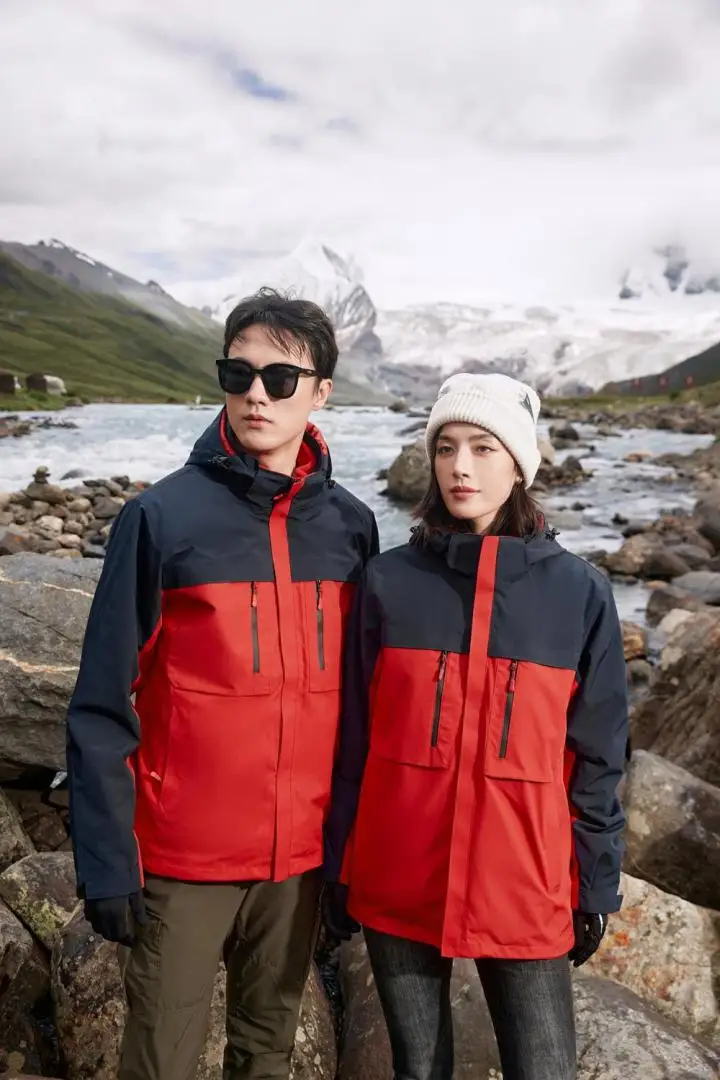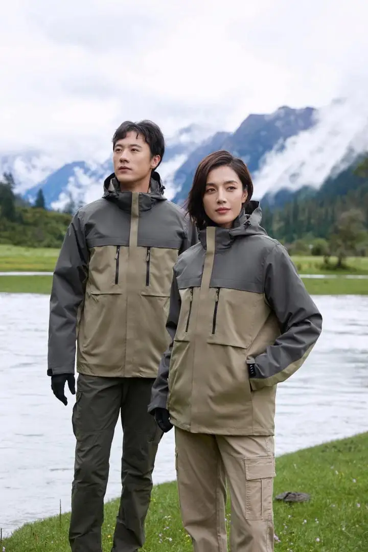 Men's Women's Three-in-One Breathable Zipper Closure Stand Collar Waterproof Windproof Soft Shell for Outdoor Jacket
