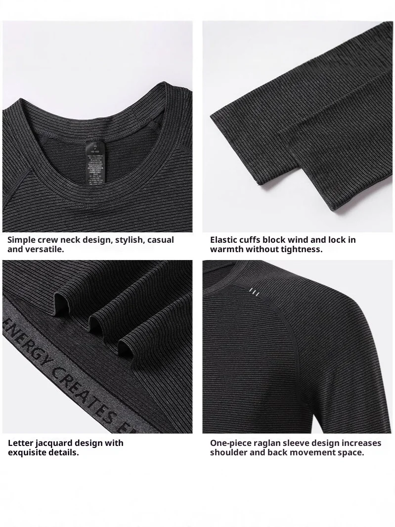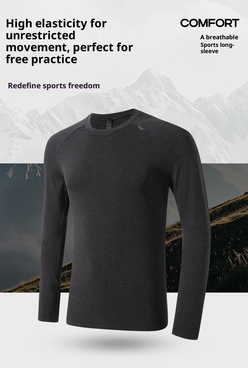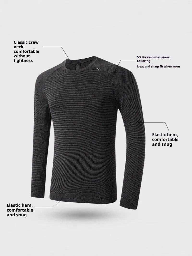 Seamless Jacquard Sports Long-sleeved T-shirt Men's Moisture-wicking Anti-Bacterial Sunscreen Quick-drying Autumn Skinny Fit