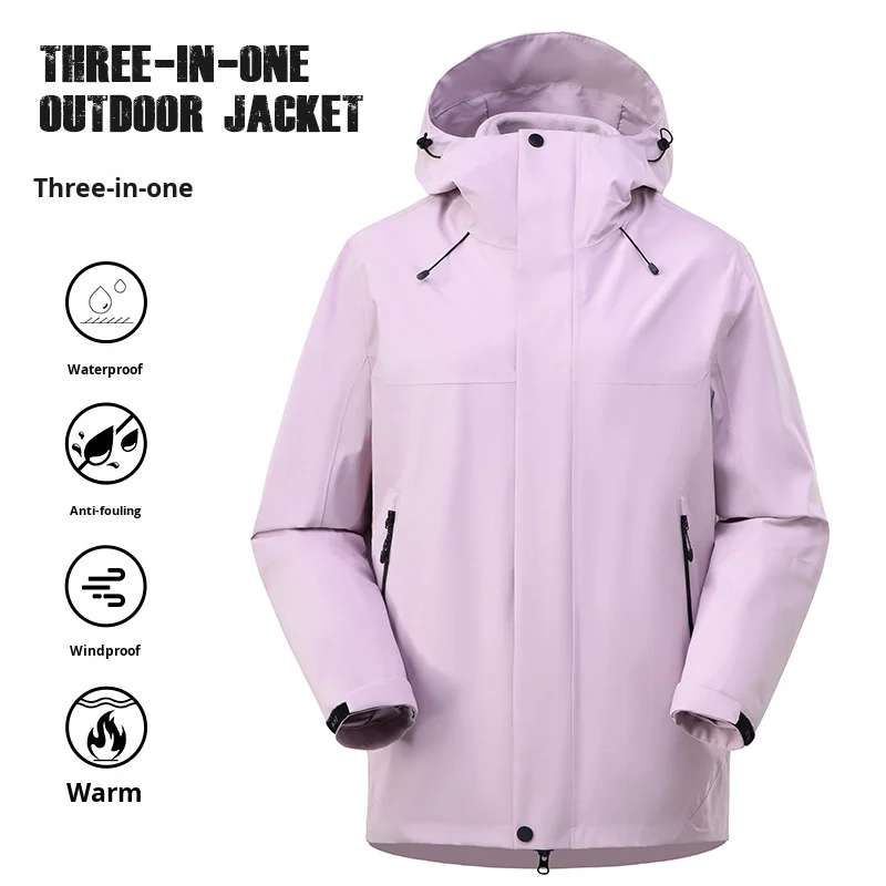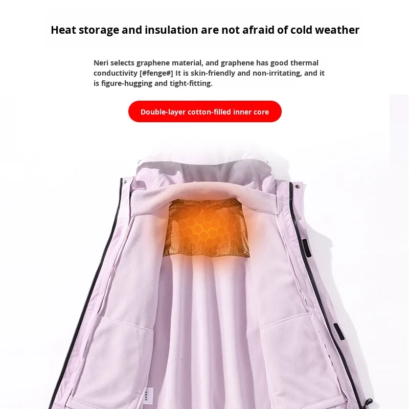 Men's Women's Three-In-One Winter Jacket Stand Detachable Graphene Fleece Liner Three-Proof Fabric Windproof Waterproof Front