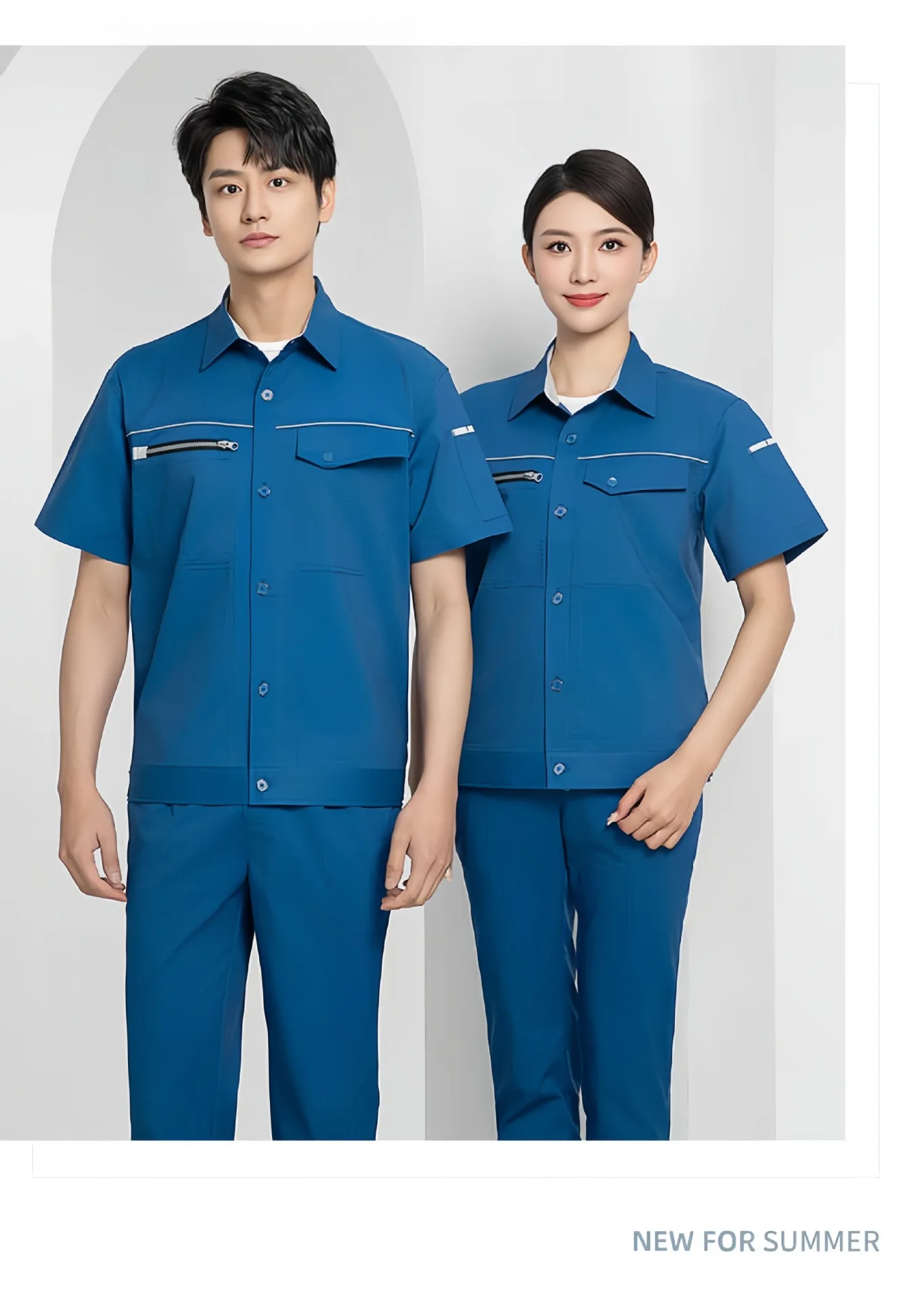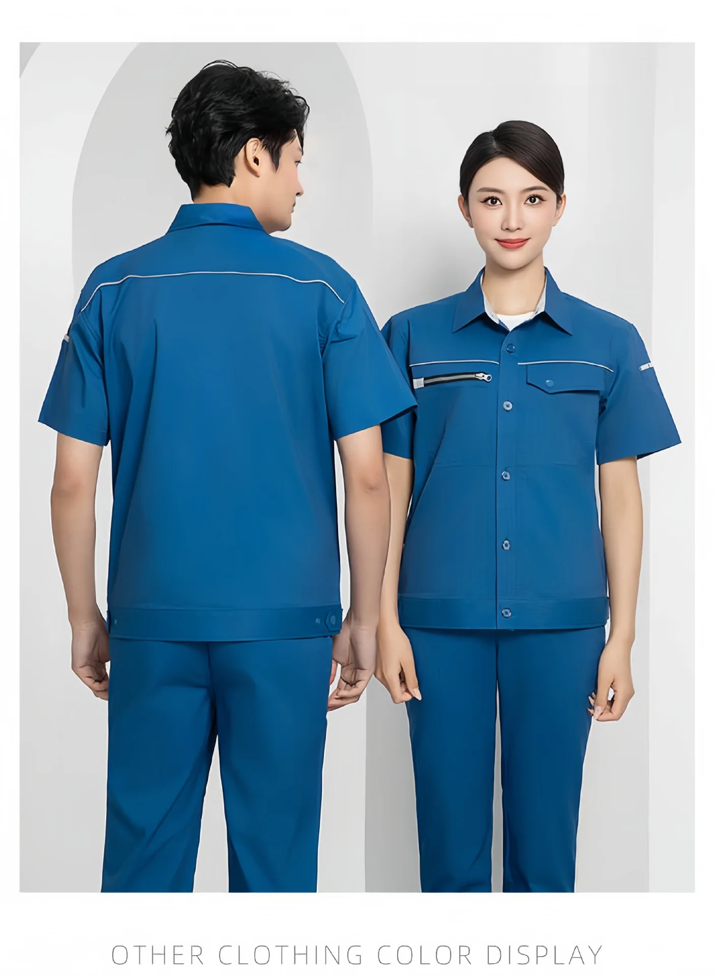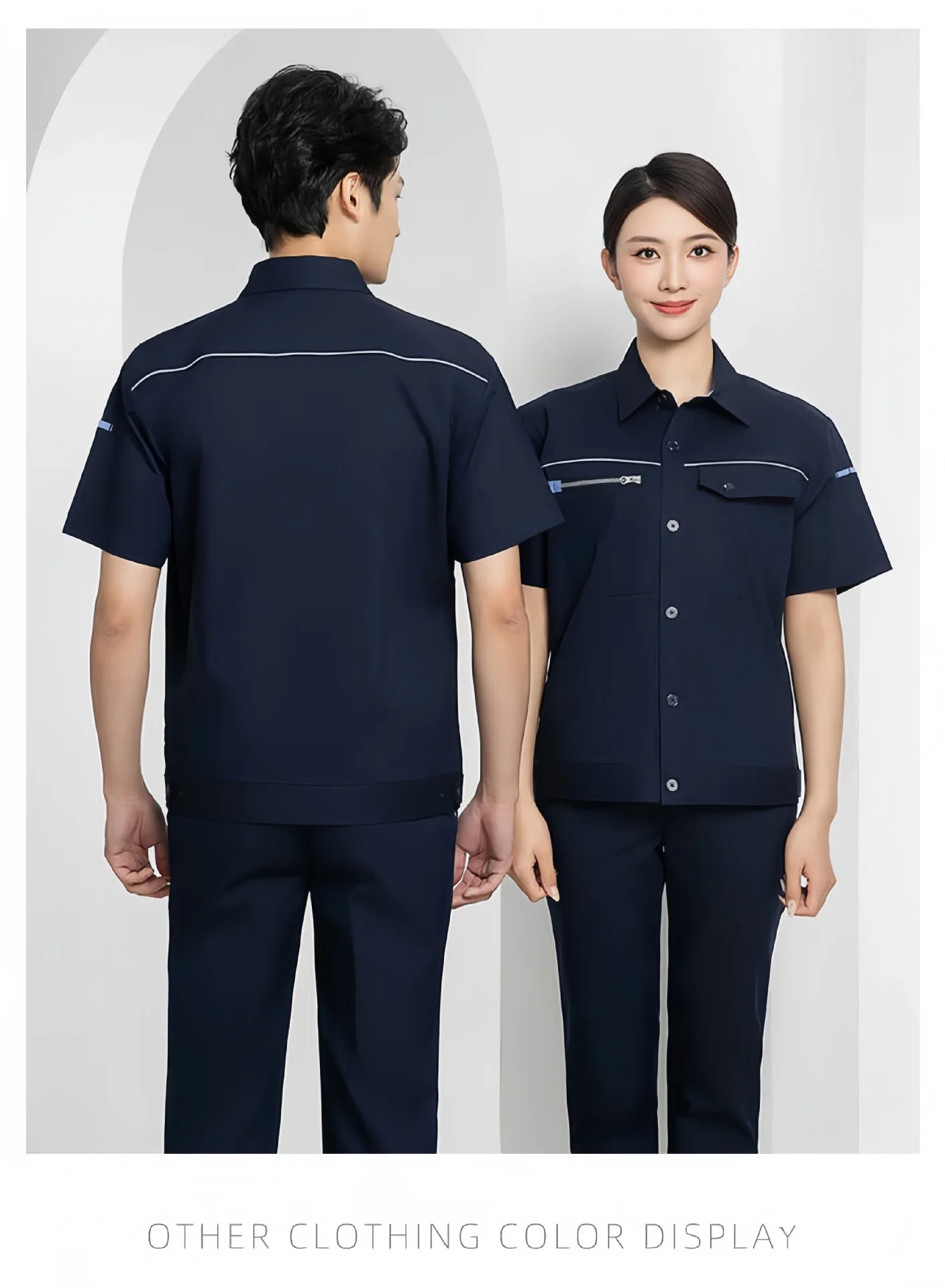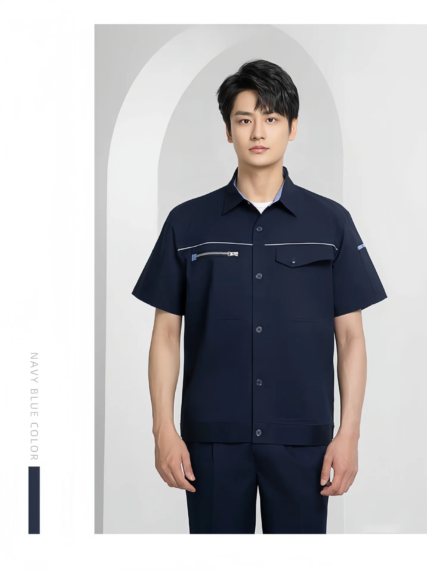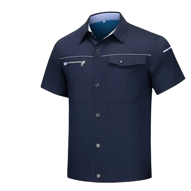 Men's High-Grade Summer Work Clothes Custom Logo Short-Sleeved Quick-Drying Anti-Static Cotton Micro-Elastic Work Wear