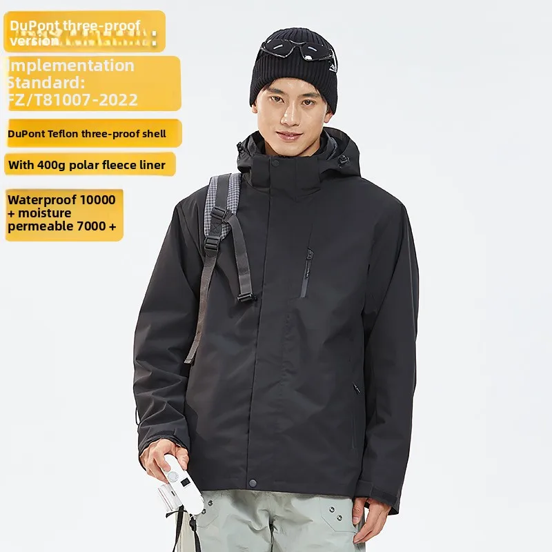 Three-In-One Soft Shell Jacket Stand Zipper Waterproof for Technology Unisex Winter Outdoor Mountaineering Full Sleeve