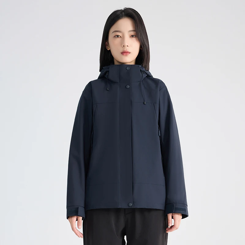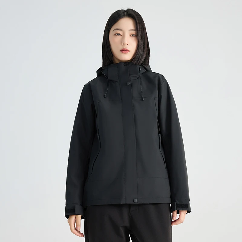 Outdoor Soft Shell Ski Jacket with Stand Collar and Zipper Closure Removable Padded Thickened Winter Windproof