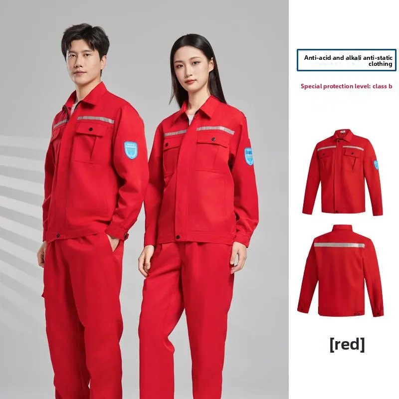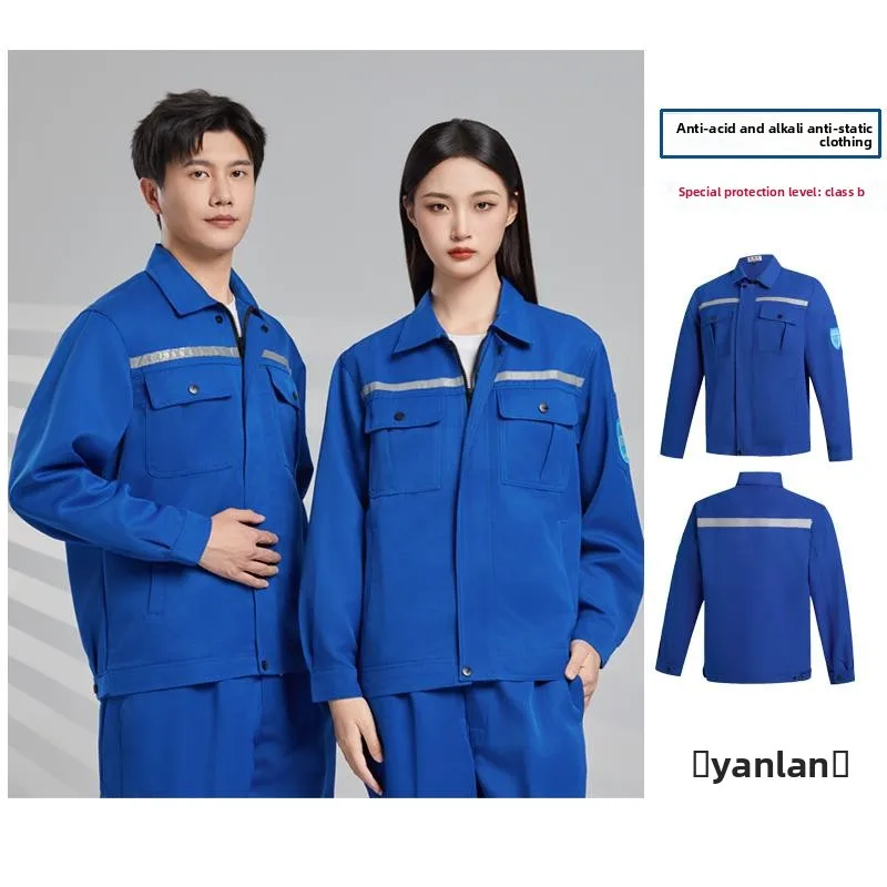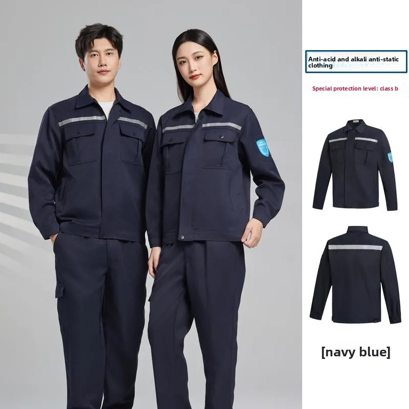 Two-Piece Full Cotton Unisex Work Fashion Labor Protection Clothing Anti-Static Flame Retardant Needle Detection Seamless Fusing