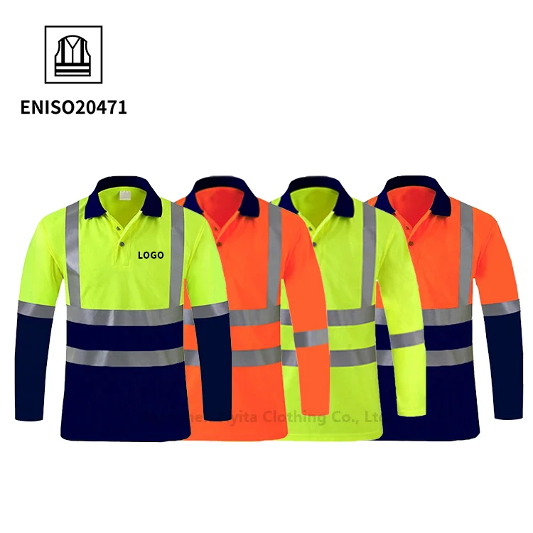 Men's Hi Vis Polyester Work Shirt ANSI Class 3 High Fluorescent Visibility Construction Mining Coal Uniform Safety Work Clothes