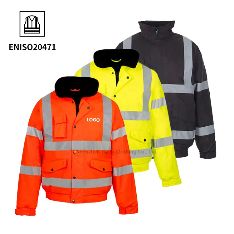 Oxford Padded Cotton Polyester Hi Vis Raincoat Safety Workwear High Visibility Coat Uniform Security Reflective Jacket