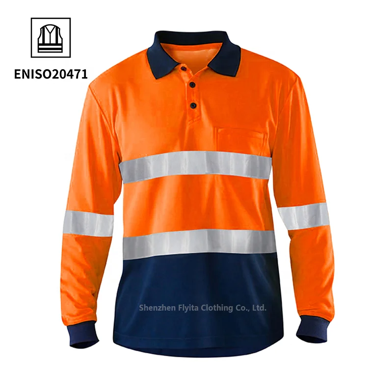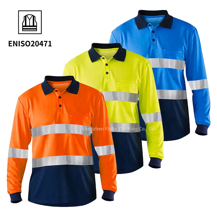 Long Sleeve Industrial Mining Hi Vis Polyester T Shirt Workwear Reflective Safety Work Clothing High Visibility Worker Shirts