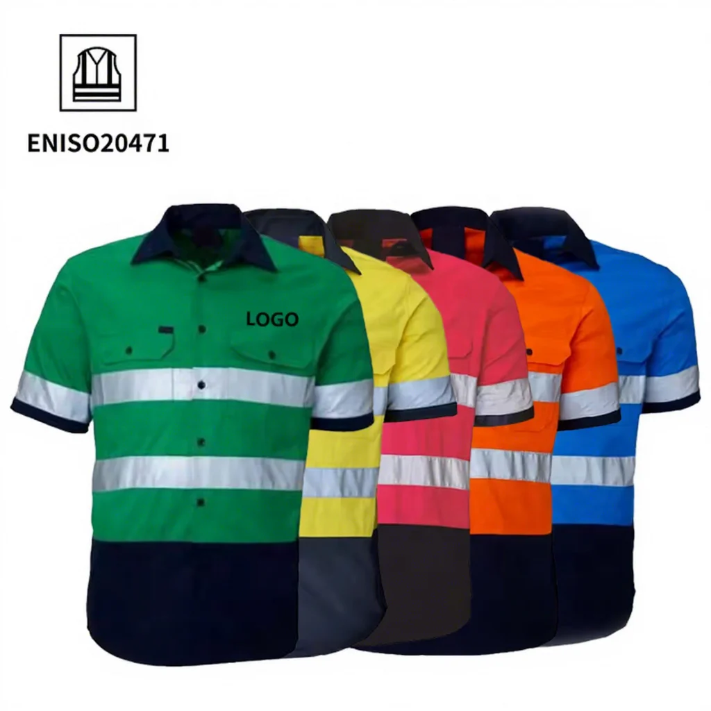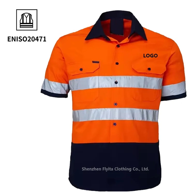 Custom High Visibility Polyester Cotton Industrial Mining Construction Reflective Uniform Worker Workwear Hi Vis Safety Shirt