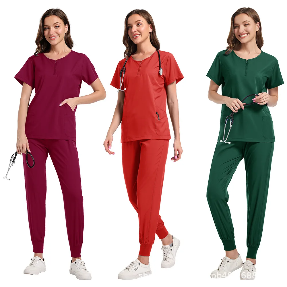 [Same Day Dispatch All Colors All Sizes] Quick-Dry Short-Sleeve Polyester Dobby Fabric Scrub Sets Unisex Medical Workwear for