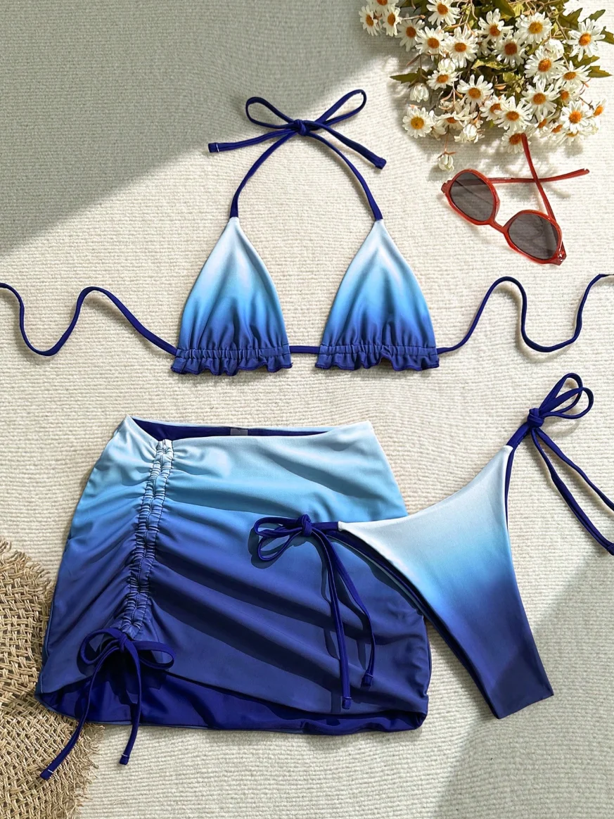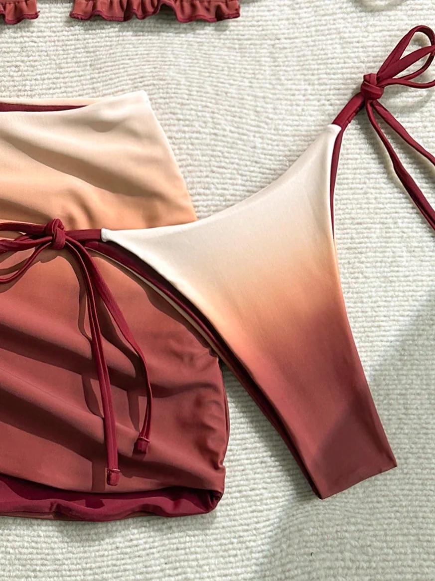 MLY Ruffle Bikini Summer Two Piece Suit Sexy Swimwear Bandage Biquini Triangle Swimsuit Printed Bathsuit