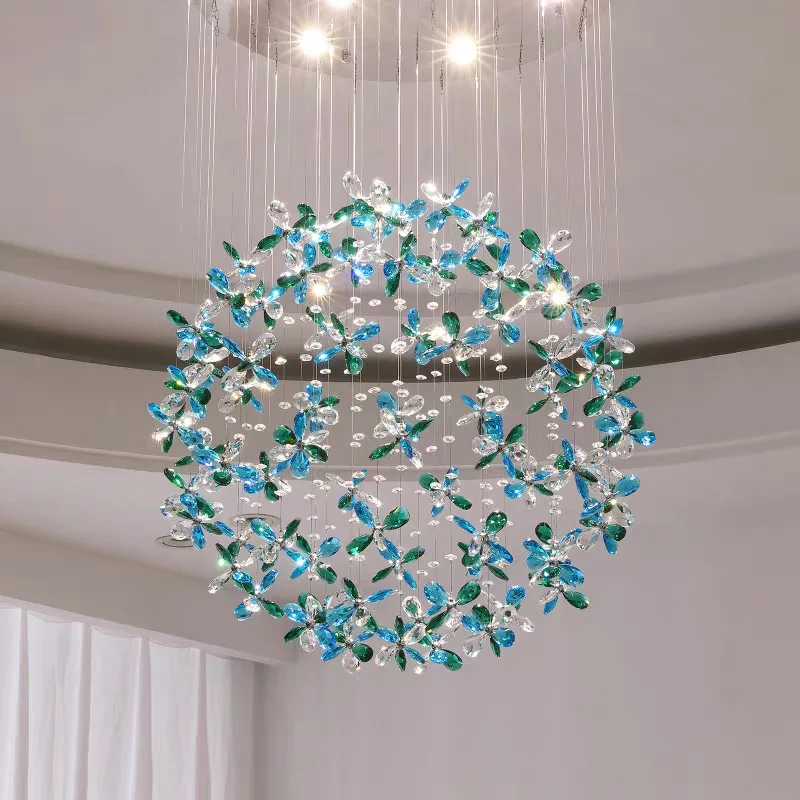 Zeal Lighting Long Stairwell Hanging Pendant Light Staircase Villa Duplex Stair High Ceiling Crystal Chandelier