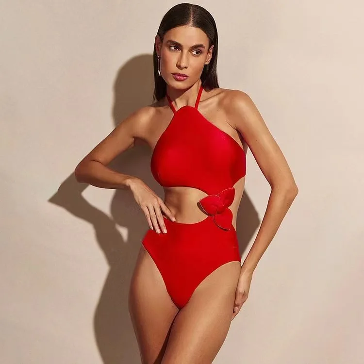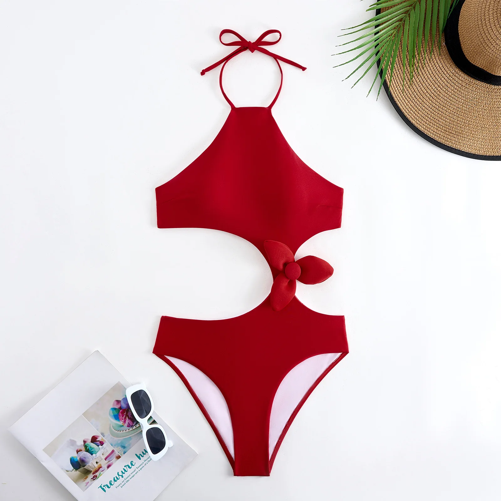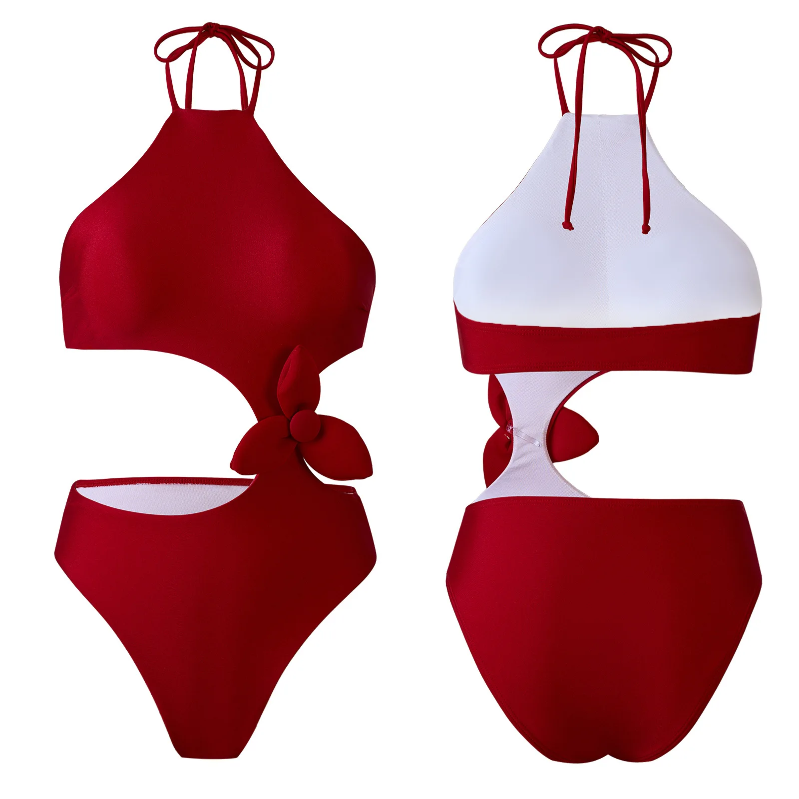 JSN 2026 New 3D Flower Hollow Out Halter Design Bathing Suits Woman Swimming Suit Female Swimwear With Sarong