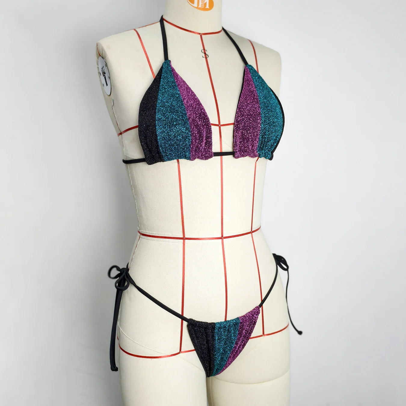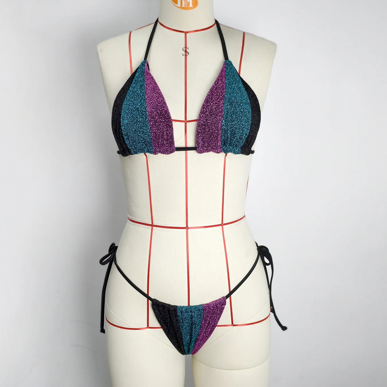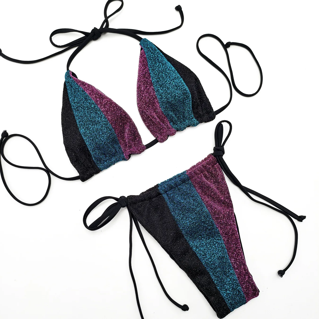 JSN 2026 Customized Halter Sparkling Sexy Patchwork Bikini Set Beach Strap Bikini Two-piece Swimsuit Fashionable Resort Swimwear