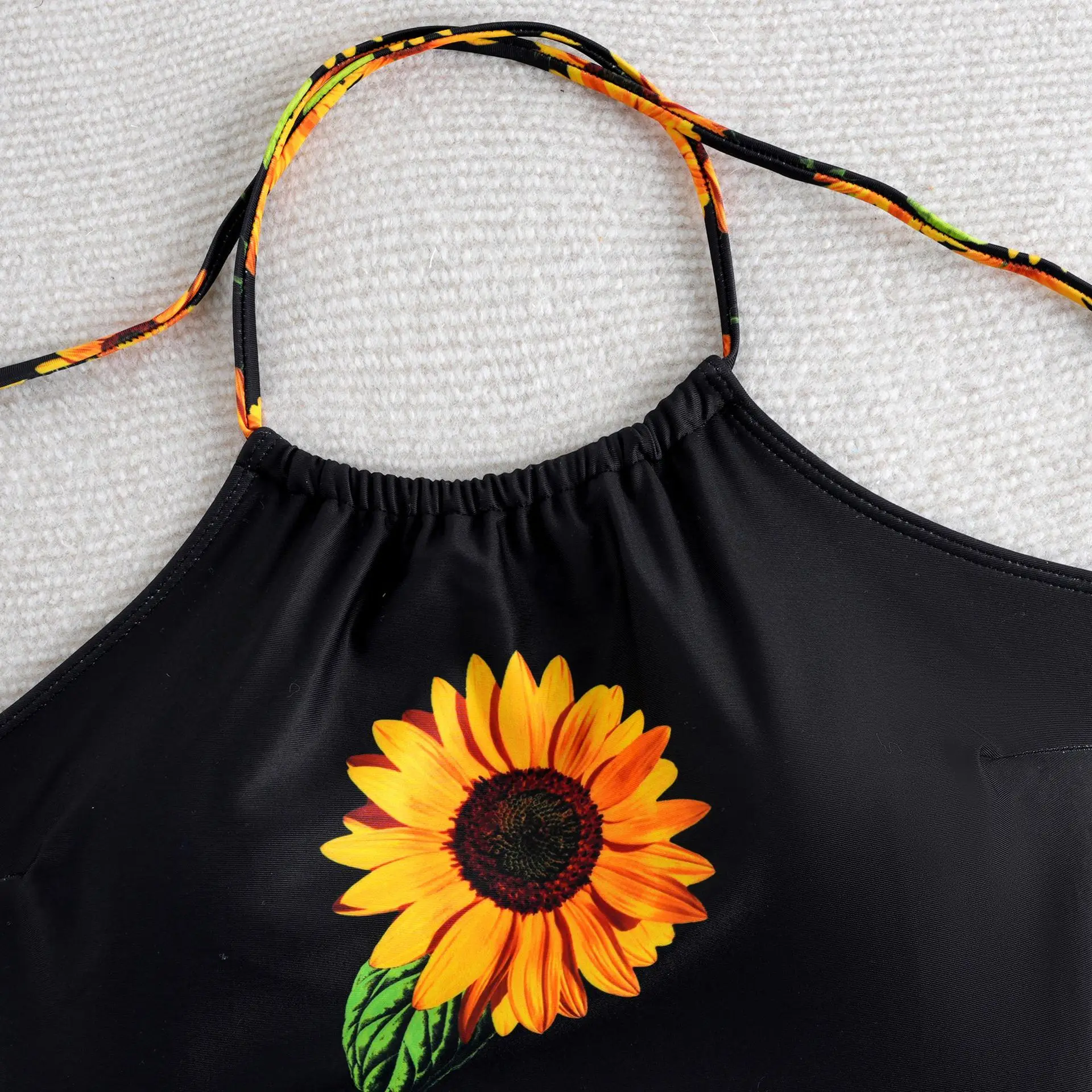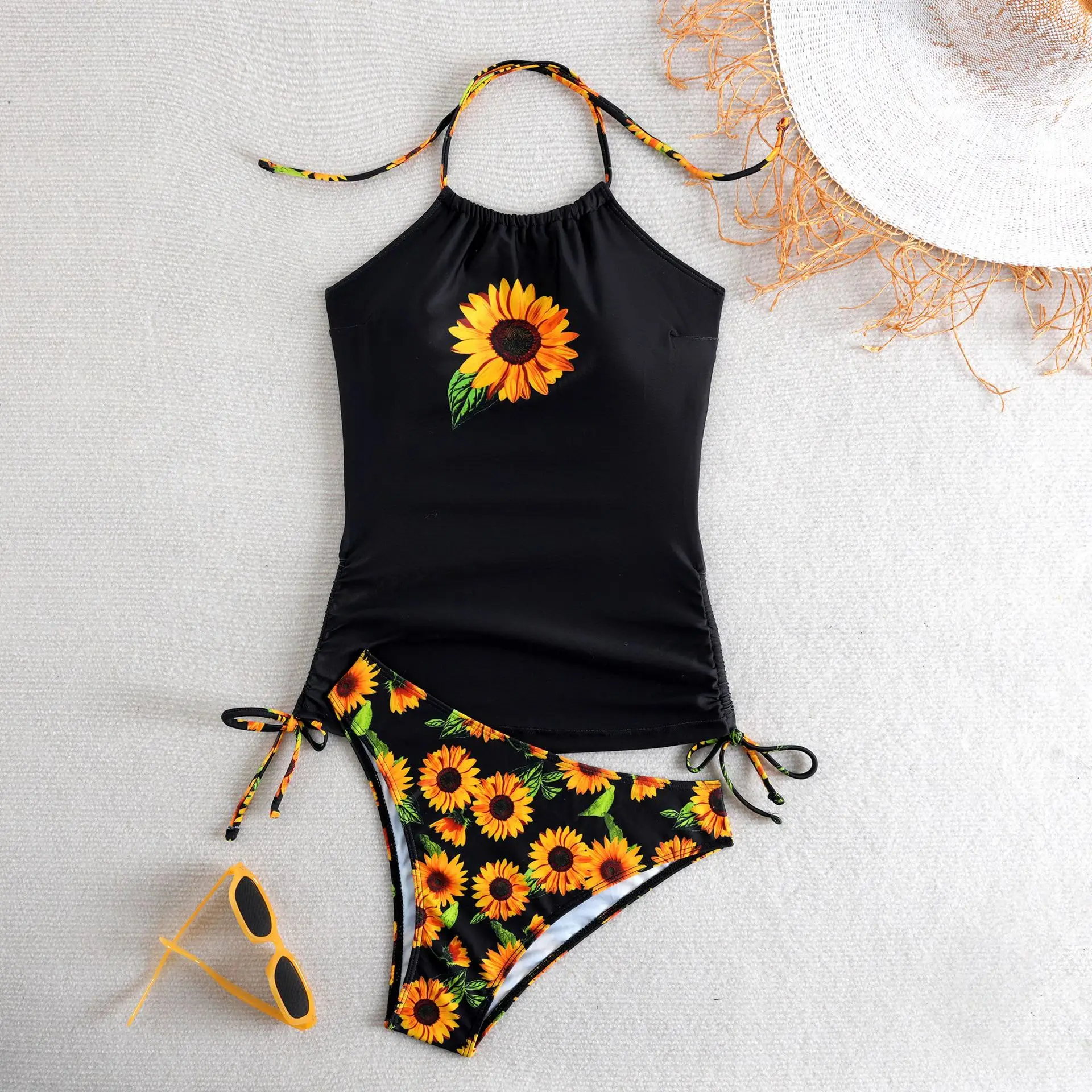 JSN 2026 Customized New Halter Two Piece Bikini with Print Flower Thongs Backless Women's Drawstring Sexy Swimsuit