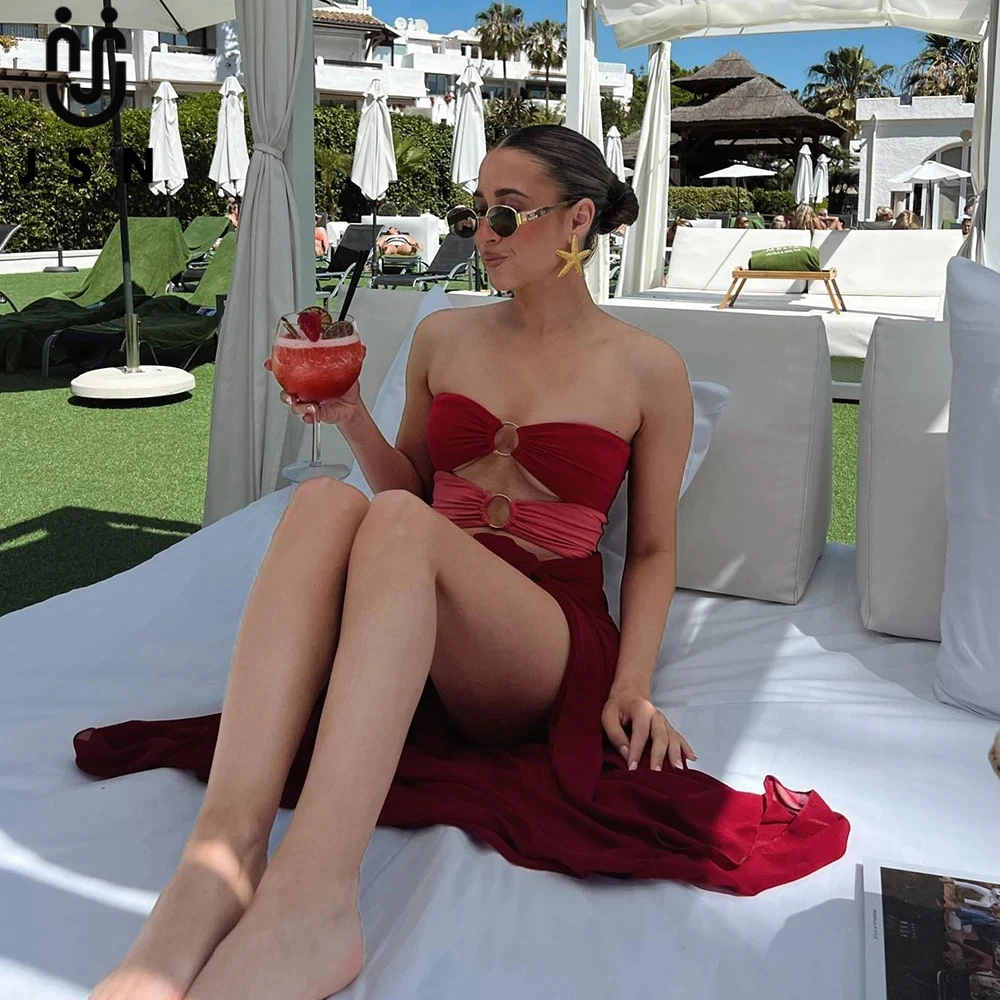 JSN 2026 Customized New Patchwork Bandeau Sexy Hollow Out Two Piece Swimsuit with Swimdress for Women Bikini Beach Swimwear