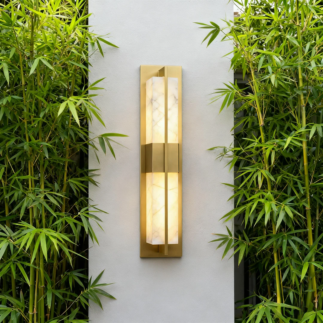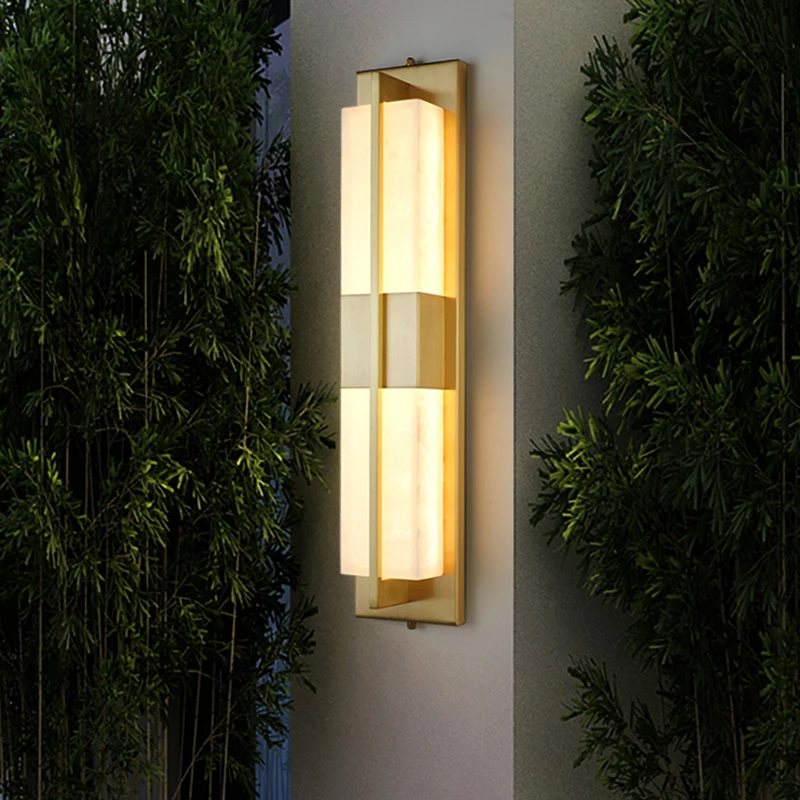 JACKSUN High Quality Copper LED Marble Wall Lamp Long Rectangle Iron Outdoor Wall Light with IP 65 Waterproof Feature