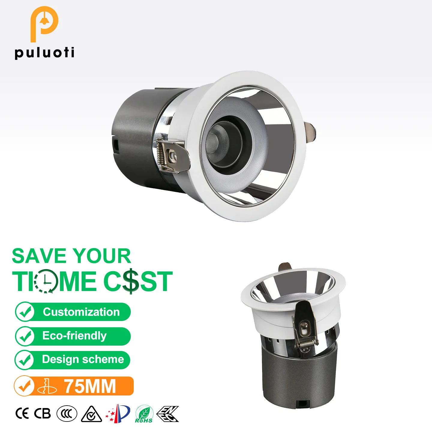 Modern-style Indoor Embedded Adjustable-beam Spotlight 10-year Warranty 97% CRI Full-spectrum Eye-protecting Chip Anti-glare