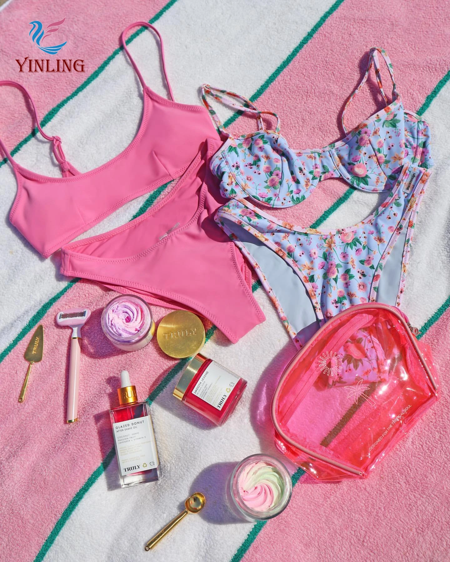 MLY Factory Wholesale Bikini Custom Sexy Bodysuit Jumpsuit Beachwear Backless Striped Print One Piece Swimwear