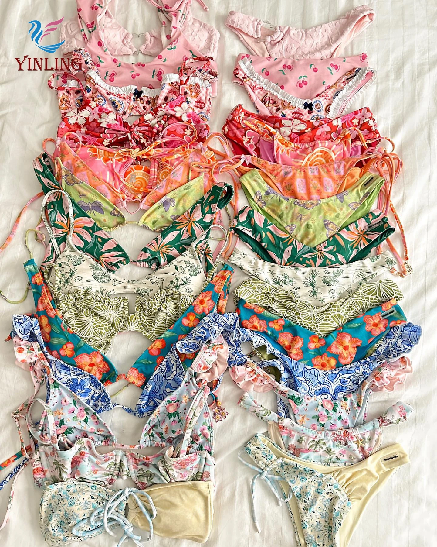 MLY Ruffle Bikini Summer Two Piece Suit Sexy Swimwear Bandage Biquini Triangle Swimsuit Printed Bathsuit