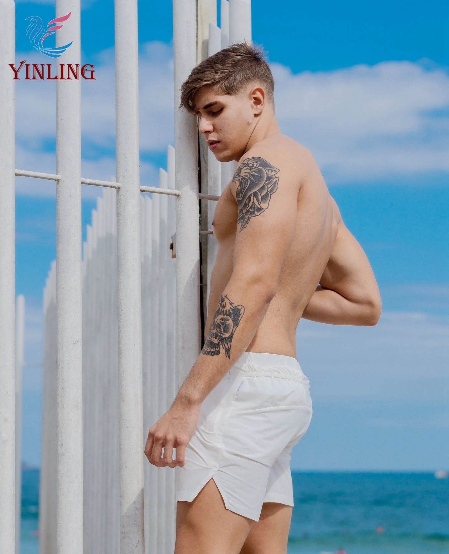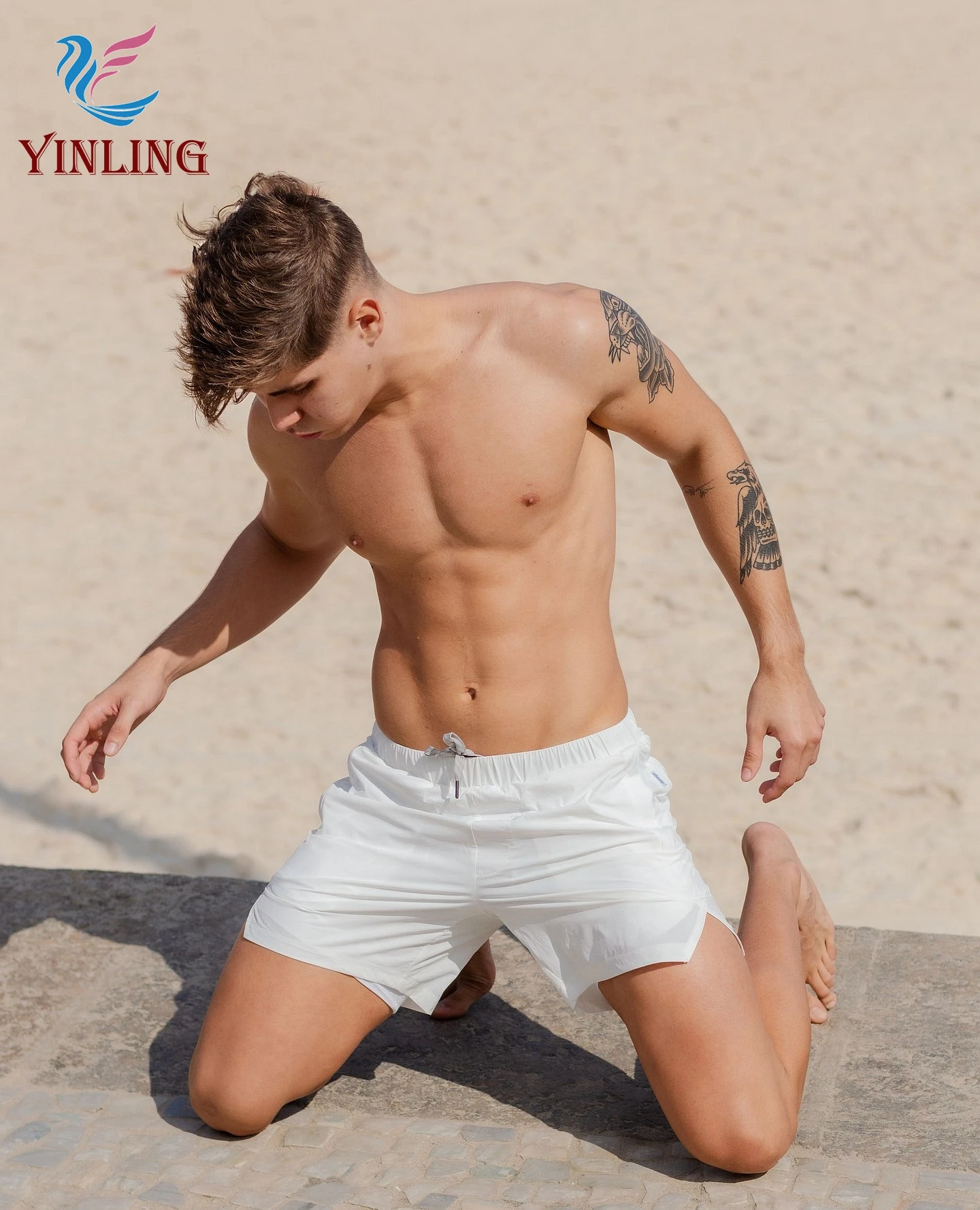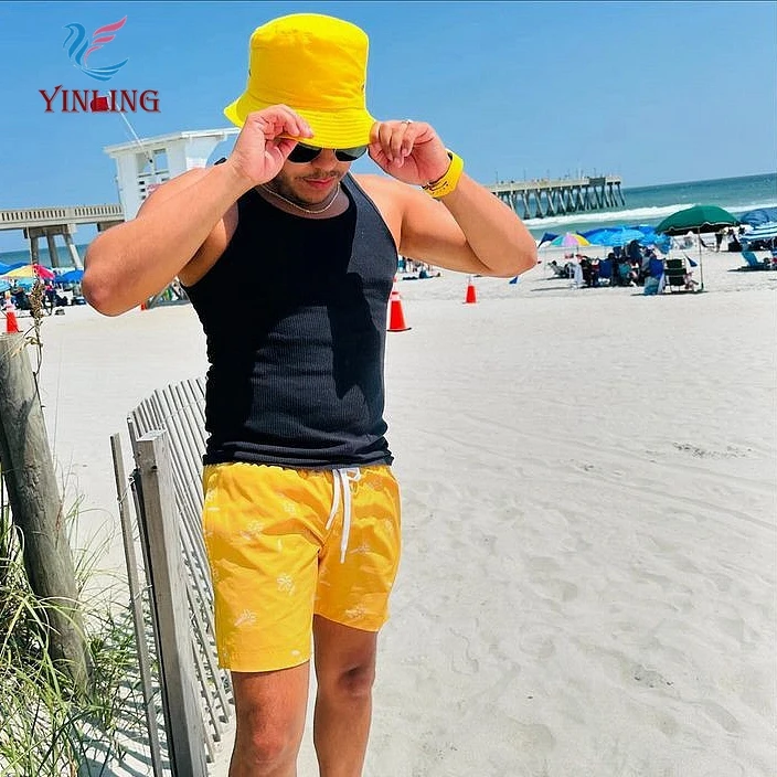 Men's Quick-Drying Board Shorts with Waist String Solid Color Bathing Trunks Beach Shorts Featuring Printed Pattern