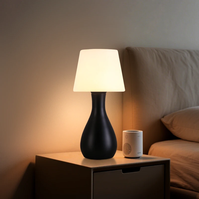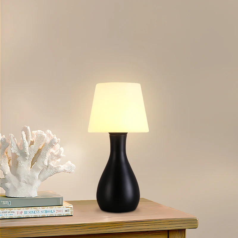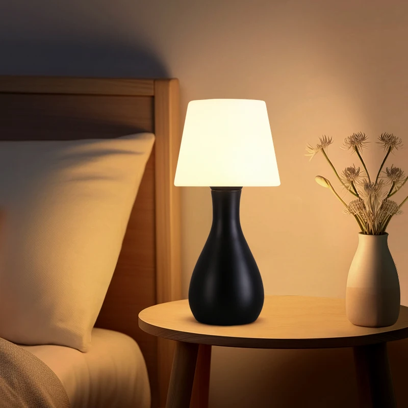 Simple Design Eco-Friendly Plastic Iron Body Drum Shade Warm White Light DC Chargeable Guangdong LED Lamp