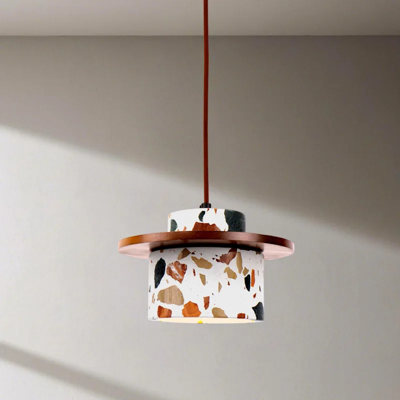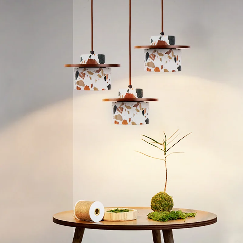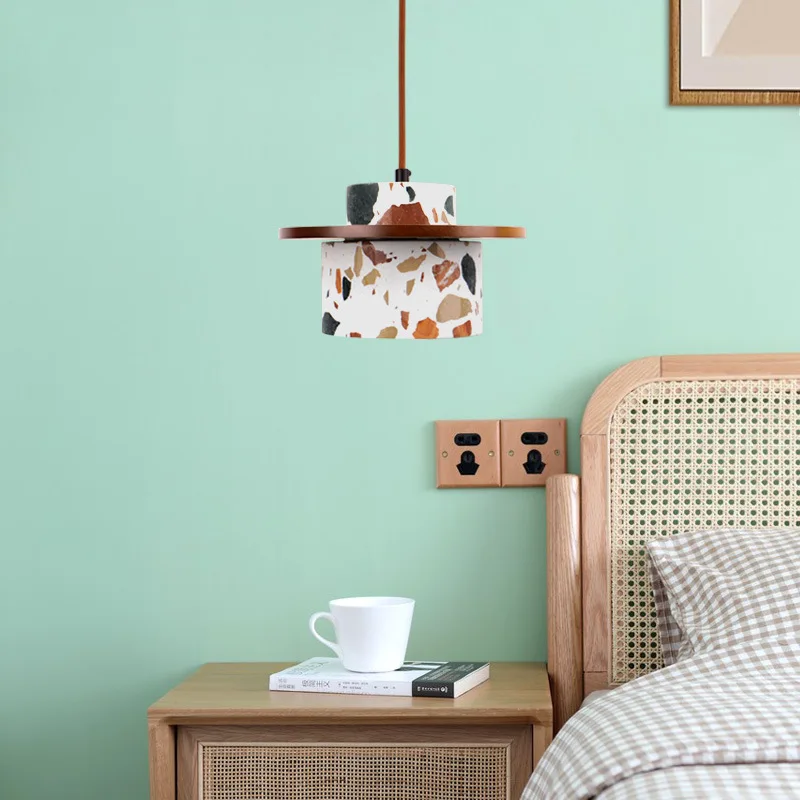 JACKSUN Japanese Wabi-Sabi Style Creative Bedside Lamp Natural Wood Bedside Pendant Light Terrazzo Mini Pendant Light
