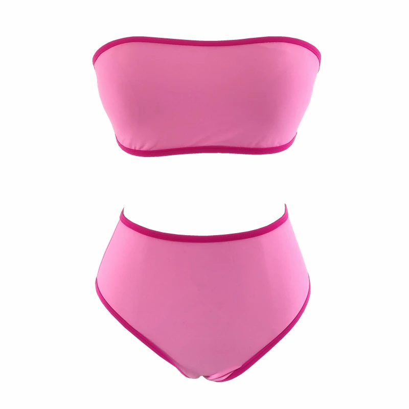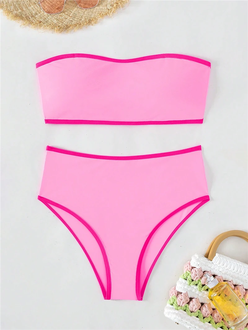 Custom 2026 New Sexy Solid Bandeau Two Piece Bikini Beachwear Strapless Swimsuit Women High Waist Swimwear