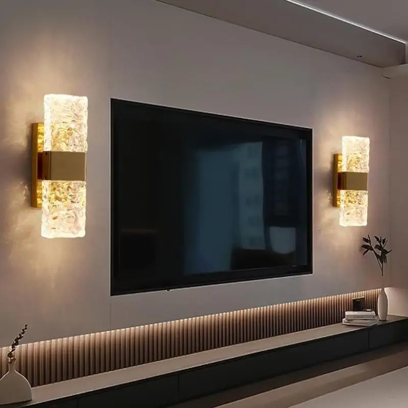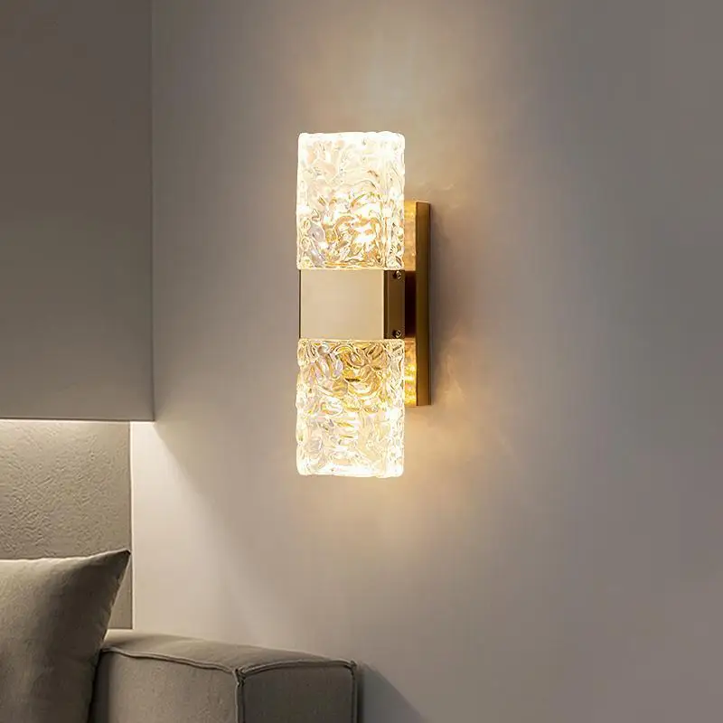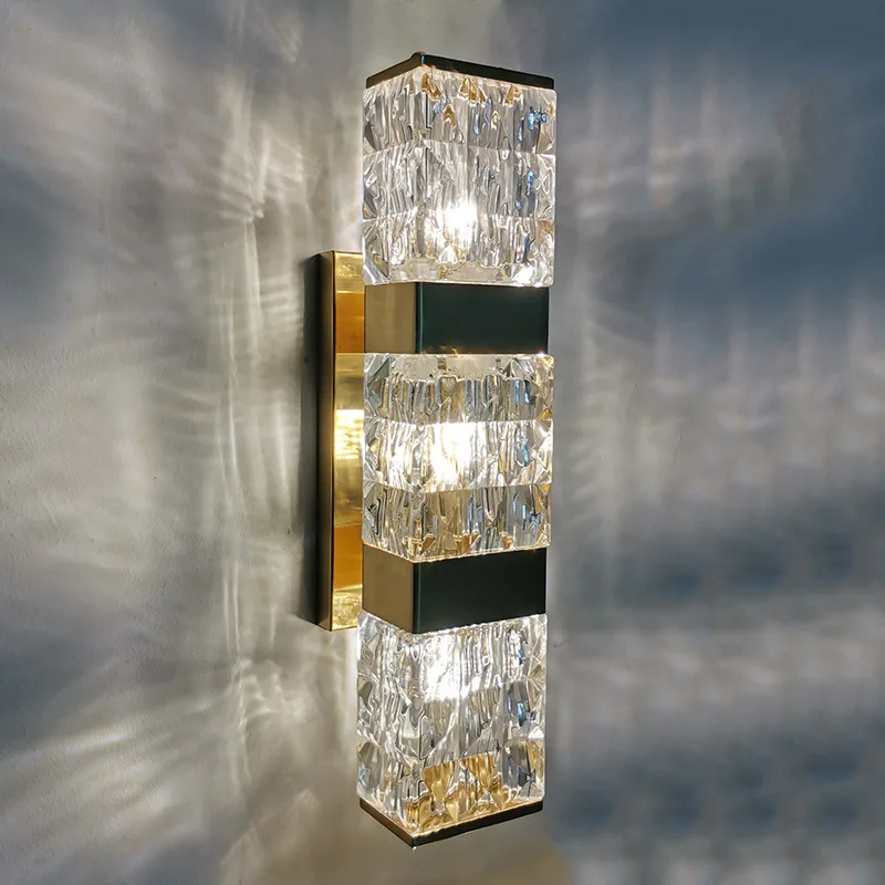 JACKSUN Modern Luxury LED Sconce Gold Crystal Vintage Design New Square Wall Bracket for Hotel Rooms Living Room Wall Lamp