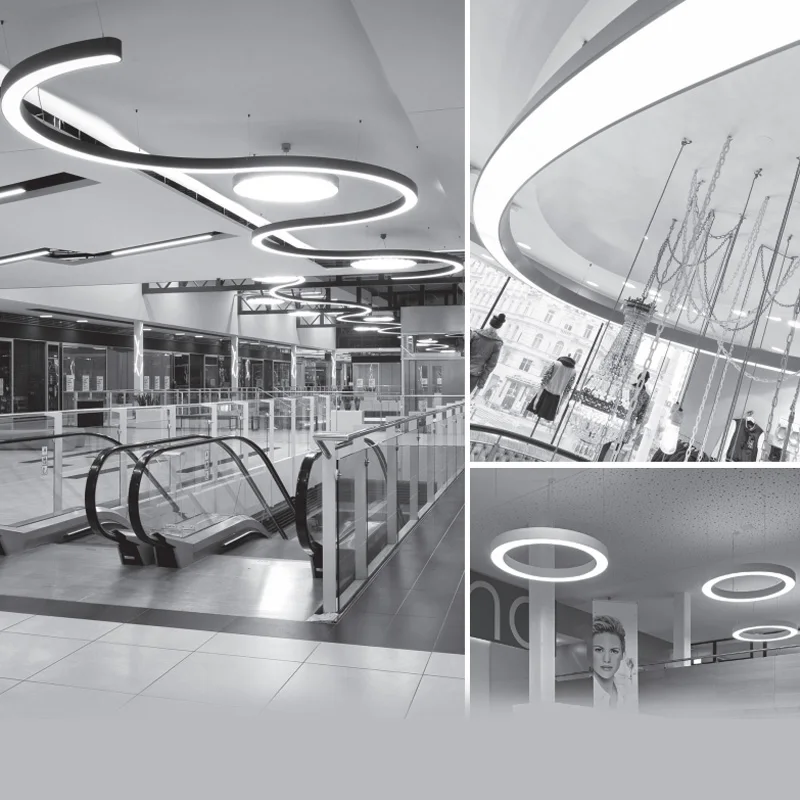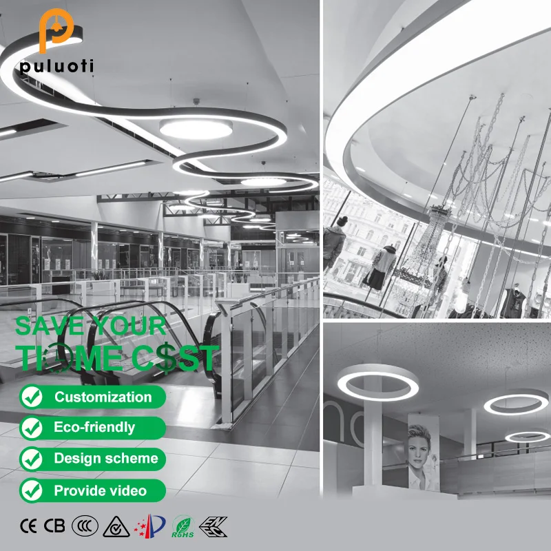 Custom Arc Curved Aluminum Alloy Contour Light T5 Supermarket Shopping Mall Garage Commercial Lighting Square Anodized Surface