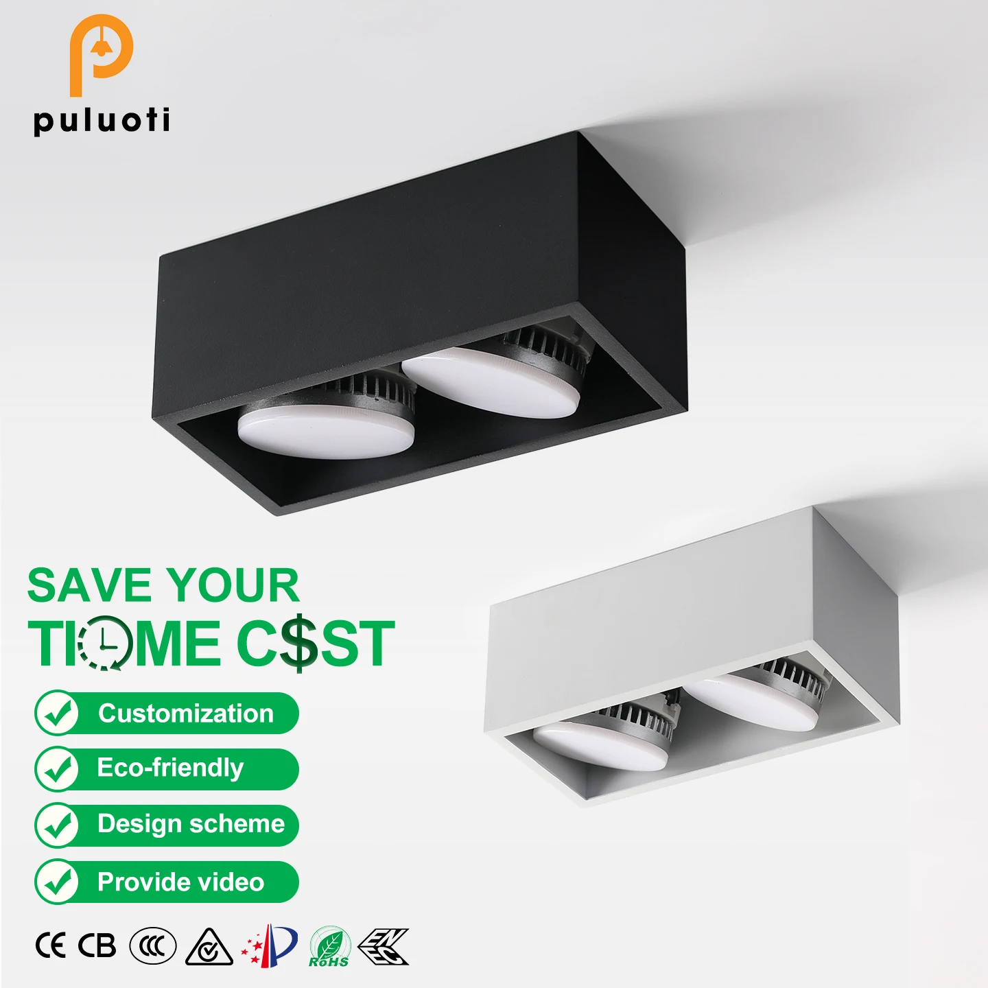 PULUOTI Adjustable Anti-Glare Spotlights with Easy Installation GX53 Surface Downlights Replacements Black for Home Hotel