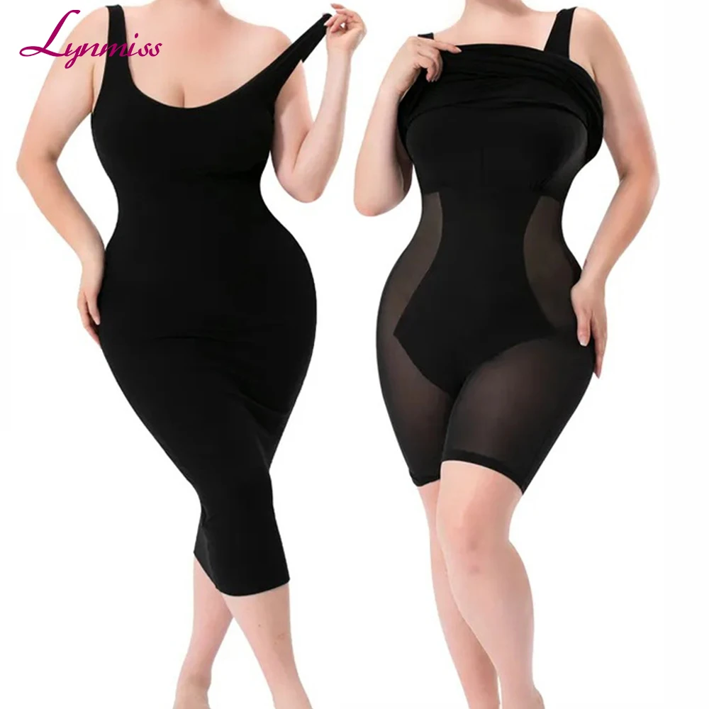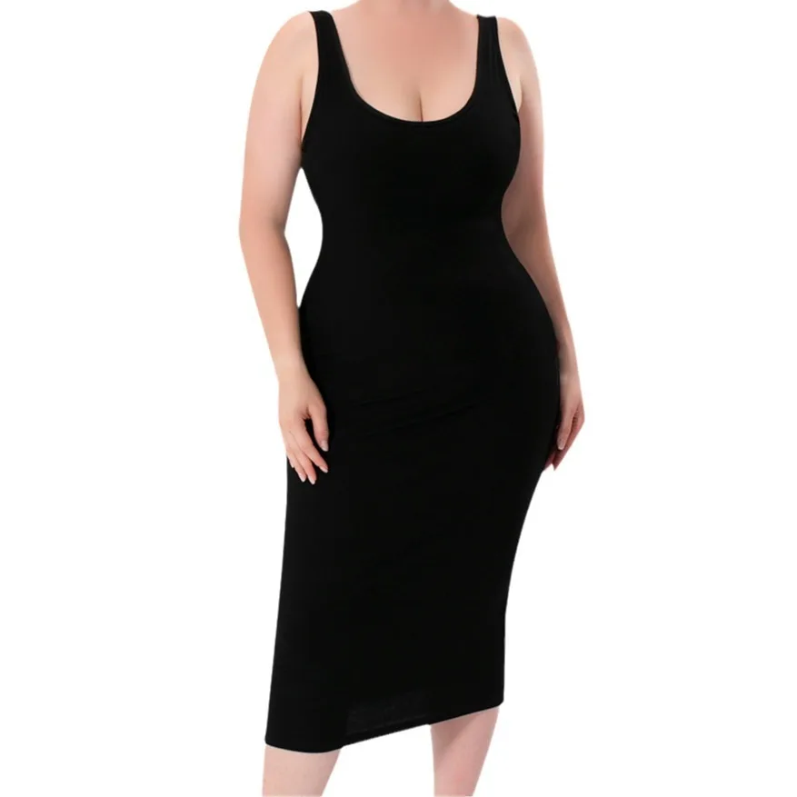 Women Built-in Shapewear Maxi Dress 2 in 1 Shaper Tummy Control Slimming Breathable Backless Shapewear Bodysuit