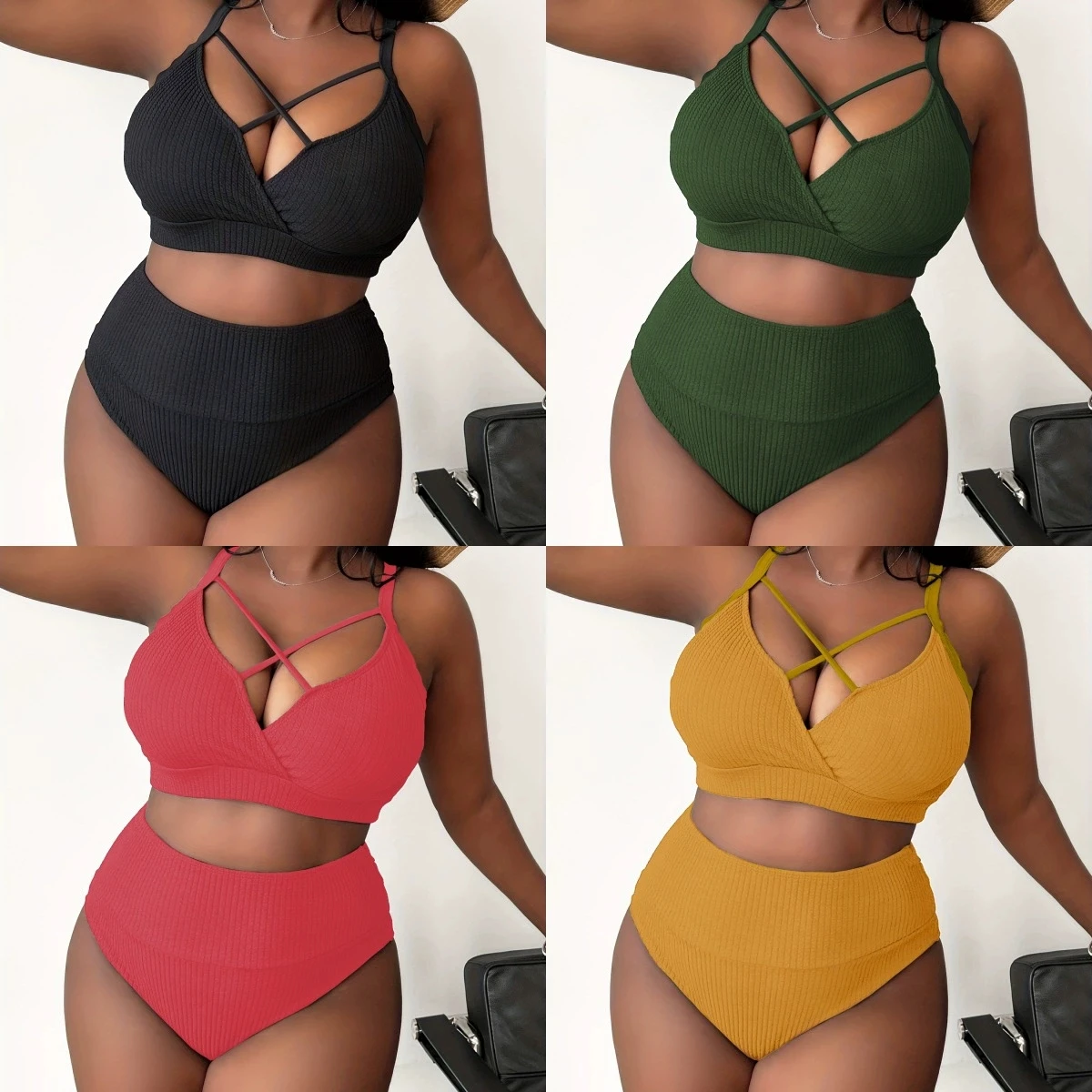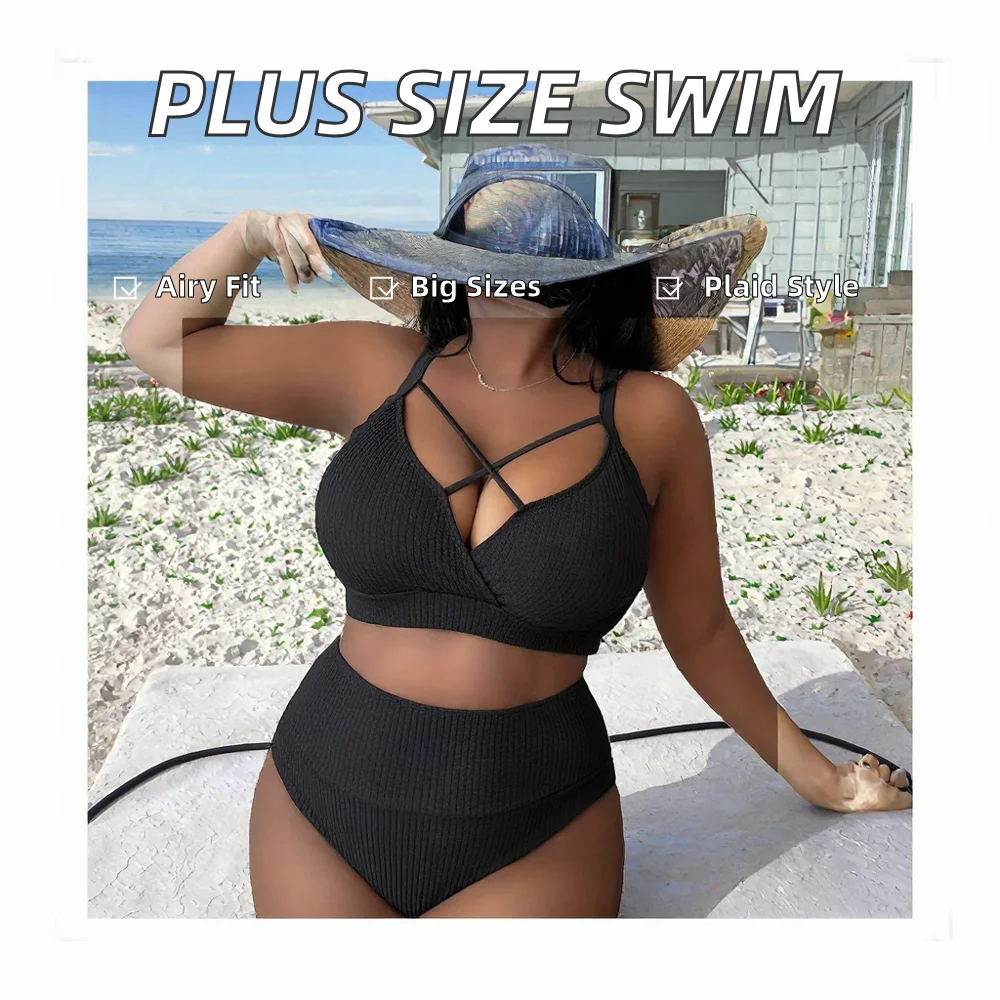 High Quality Plaid Pattern Women's Plus Size Swimsuit Large Size African Bathing Suit 2-Piece Set Wholesale