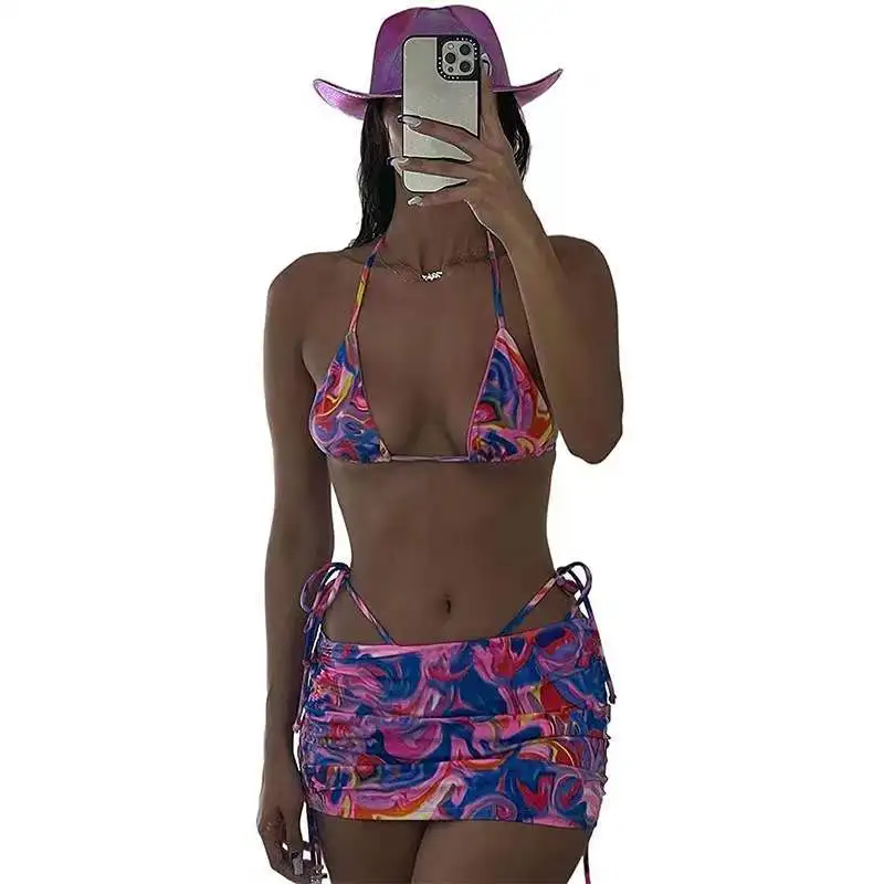 Perfect Quality Polyester Print Tie-dye Bikinis and Swimsuits 3 Piece Bikini Set