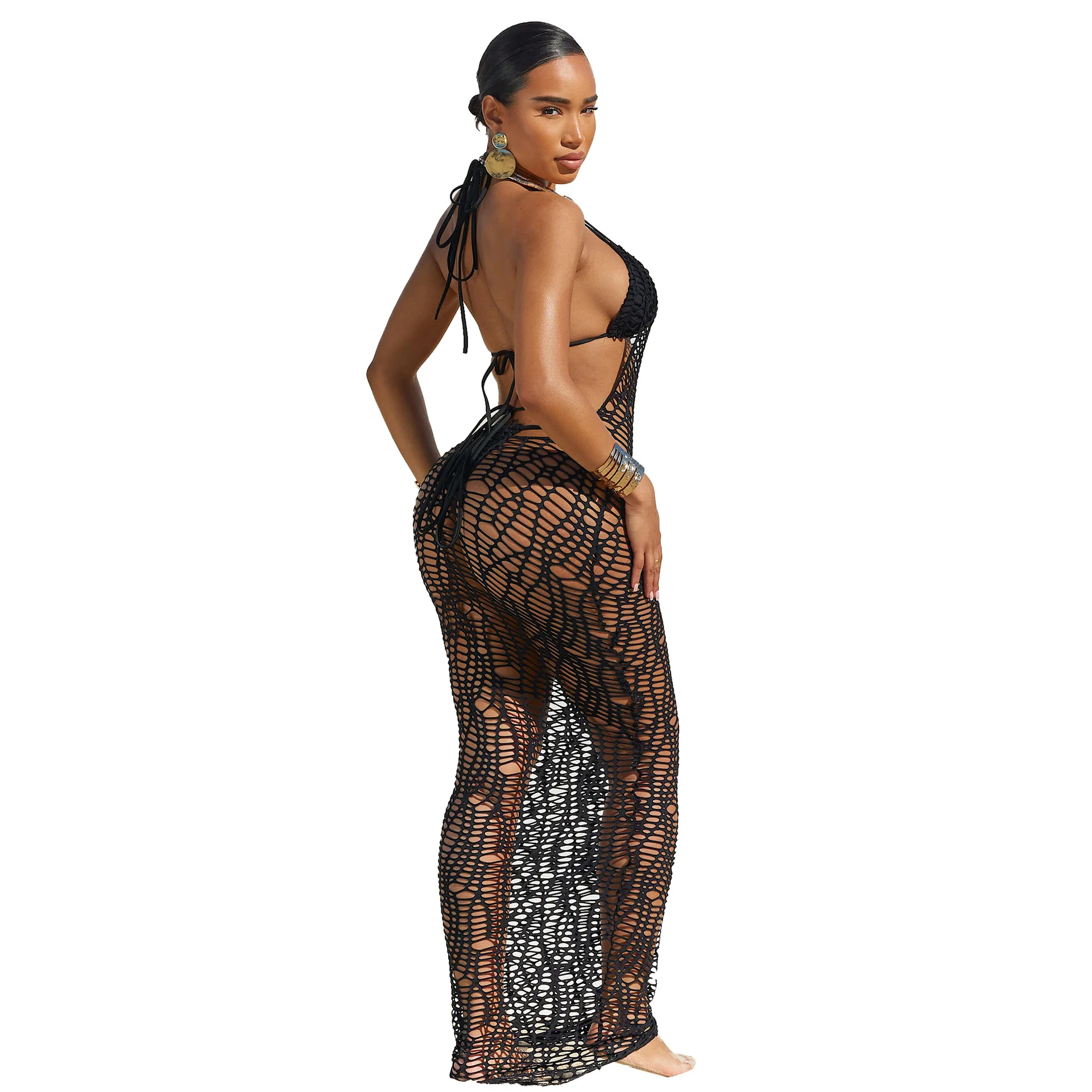 Wholesale Long Cut Out Yarn Crochet Summer Dress Women's Dresses