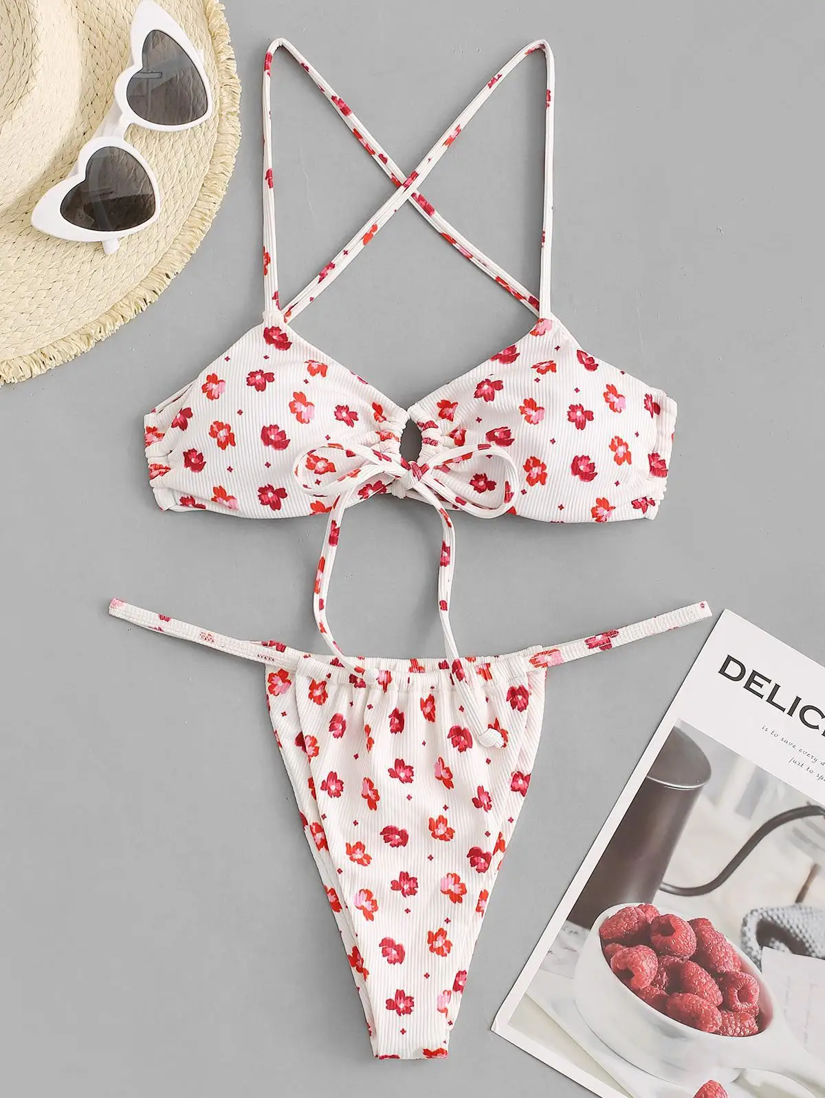 Famous Brand Removable Padded Floral Bikini Floral Swimwear Bikini Sets for Women