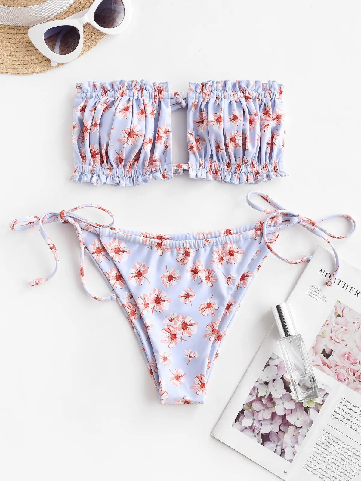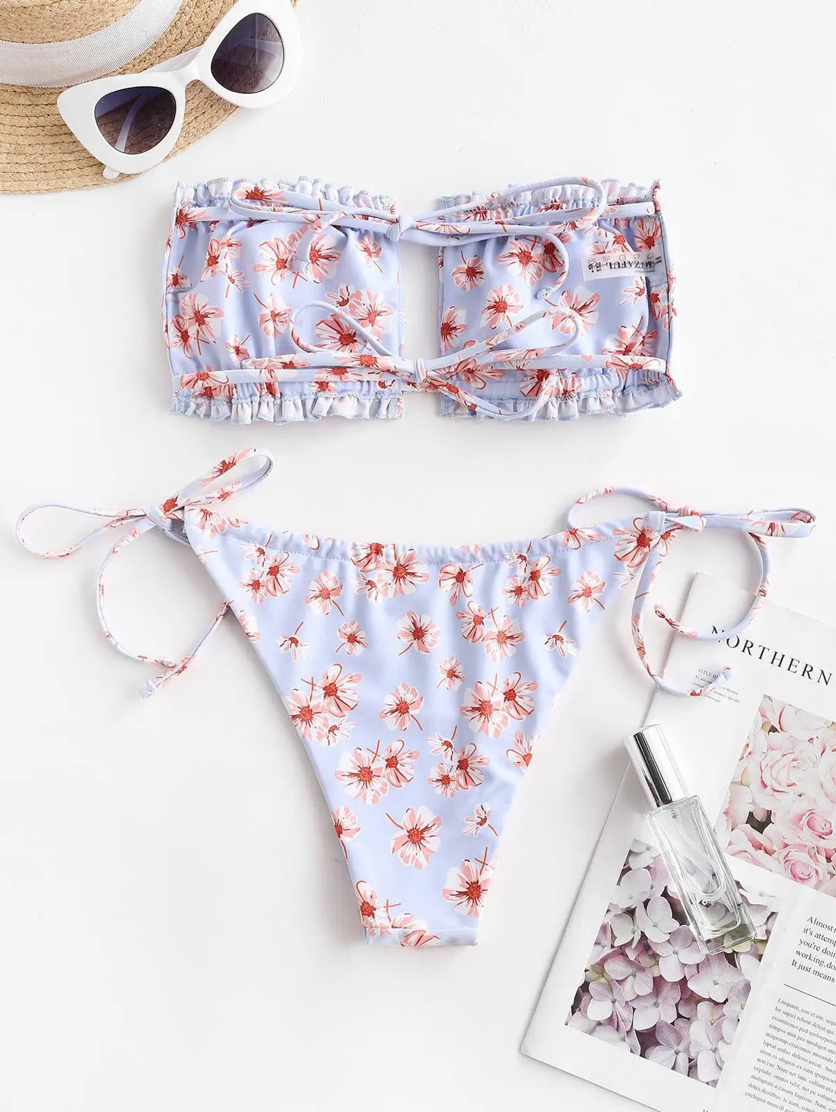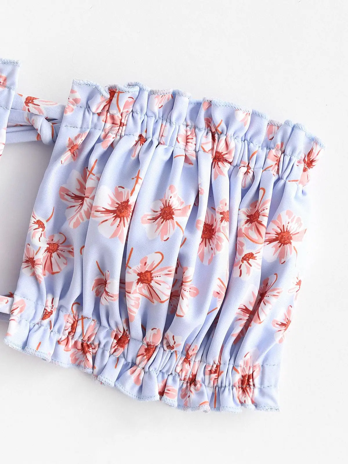 Good Price Floral Print Custom logo Bandeau Bikini Set