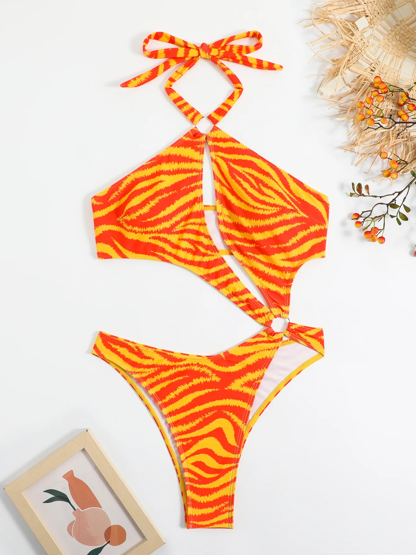 MLY Factory Wholesale Bikini Custom Sexy Bodysuit Jumpsuit Beachwear Backless Striped Print One Piece Swimwear