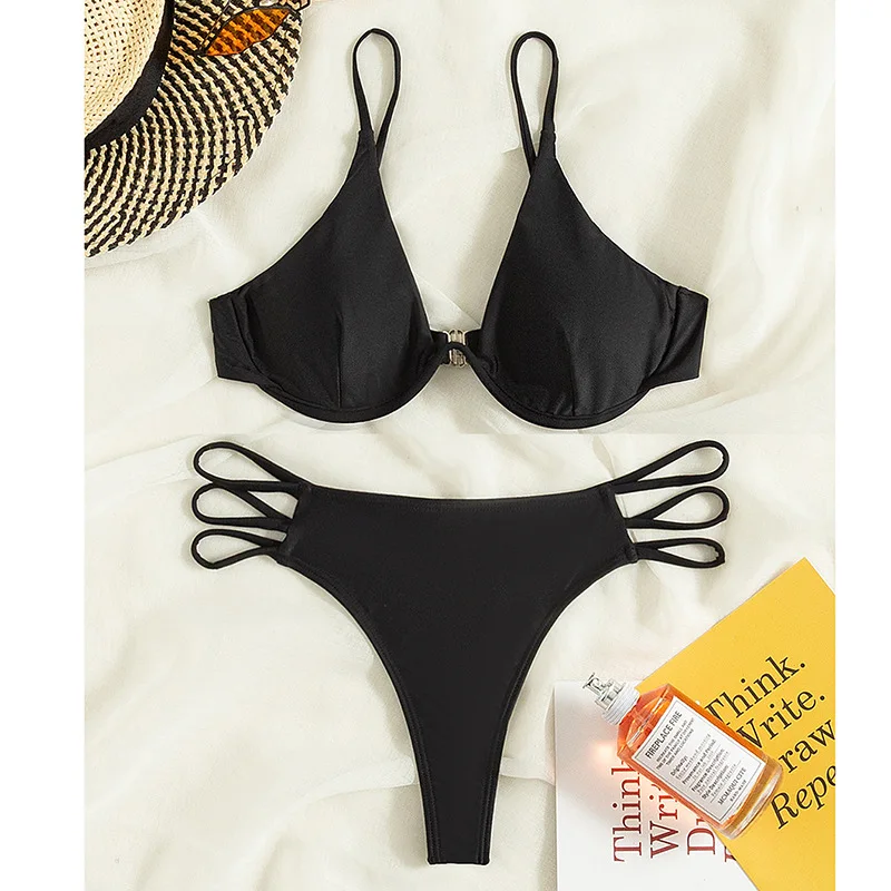 Hot Sale Nice Bottom Extreme Micro Sexy Bikini Underwire Black Women's Adult Swimwear Solid Thong Support LT Swimwear