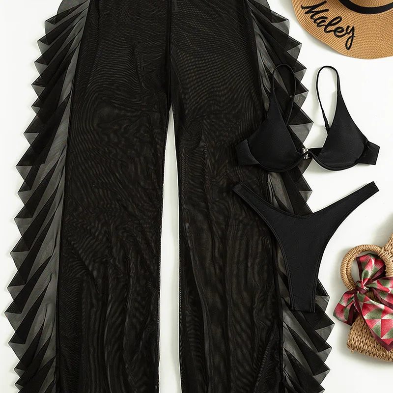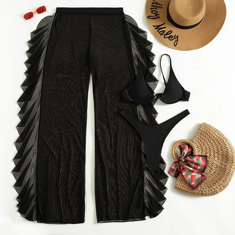 2022 Sexy Swimwear Underwire Bikini Set 3 Pieces Swimwear With Pants Black Women Adults Solid Crochet Bikini White Bikini 1000