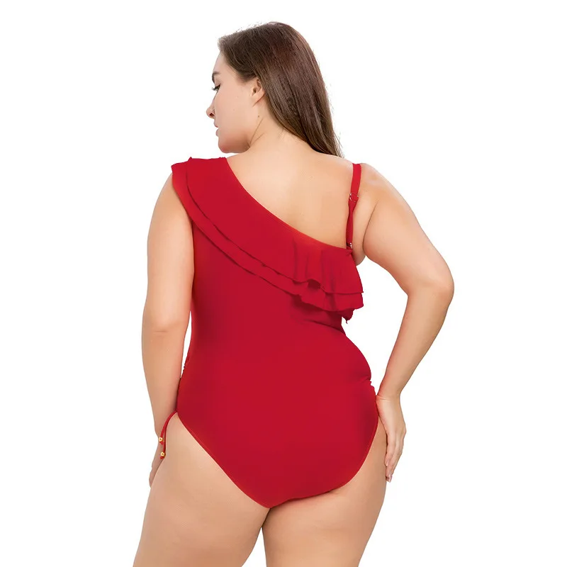 Online Sale One Shoulder Ruffle Plus Size Beach Wear for Women
